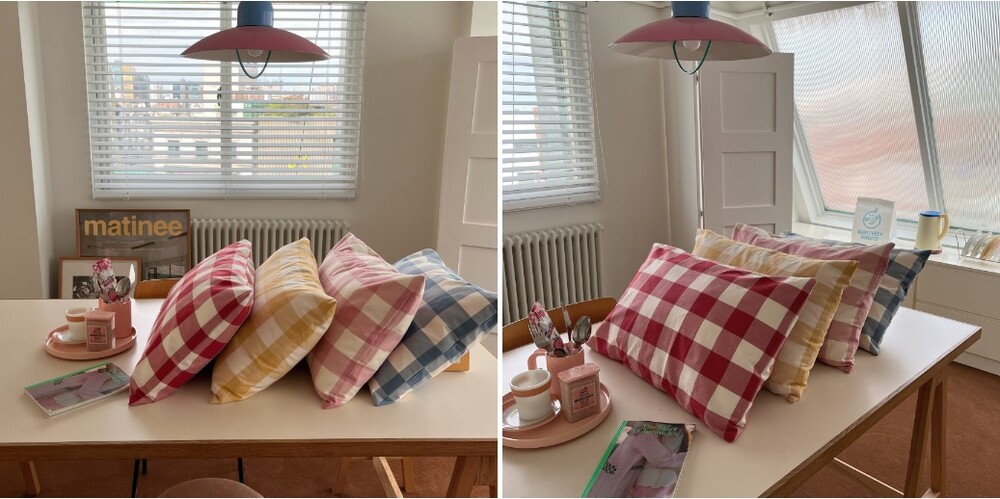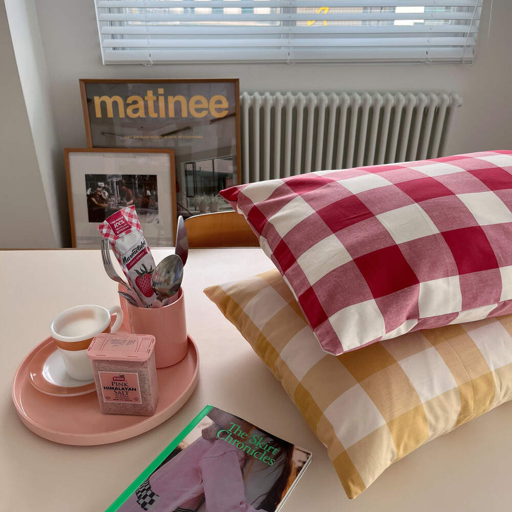 체크패턴이 크고, 파스텔톤 컬러감으로 흔치않은 디지인에 컬러감이라 소장가치가 있어요:)