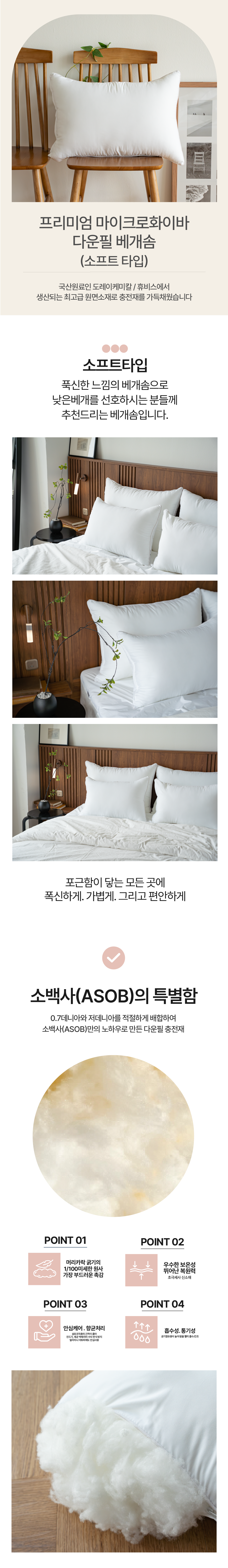 프리미엄 마이크로화이바 다운필 베개솜 40x60 50x70