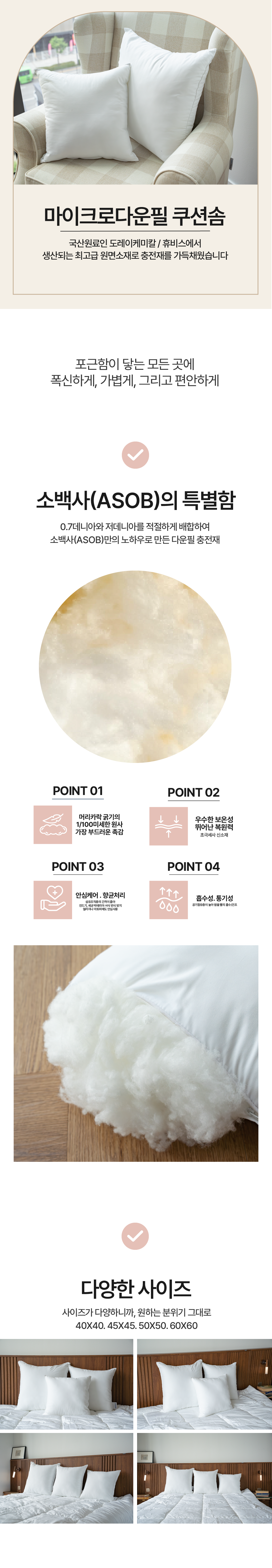 프리미엄 마이크로화이바 다운필 쿠션솜