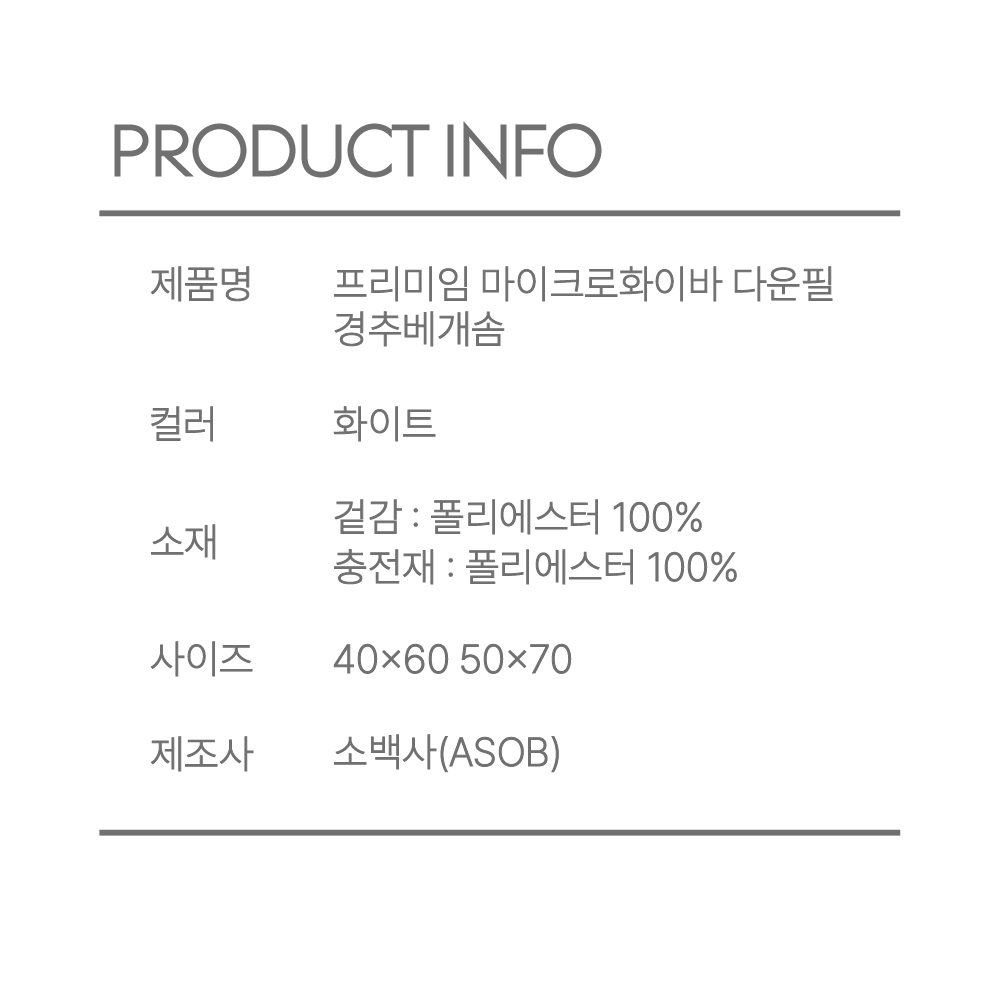 마이크로화이바 다운필 경추베개솜 40x60 50x70