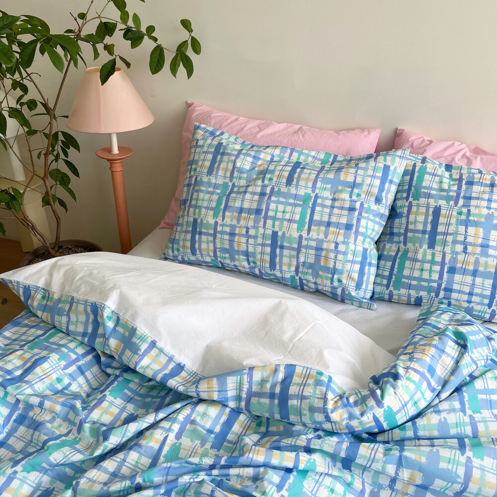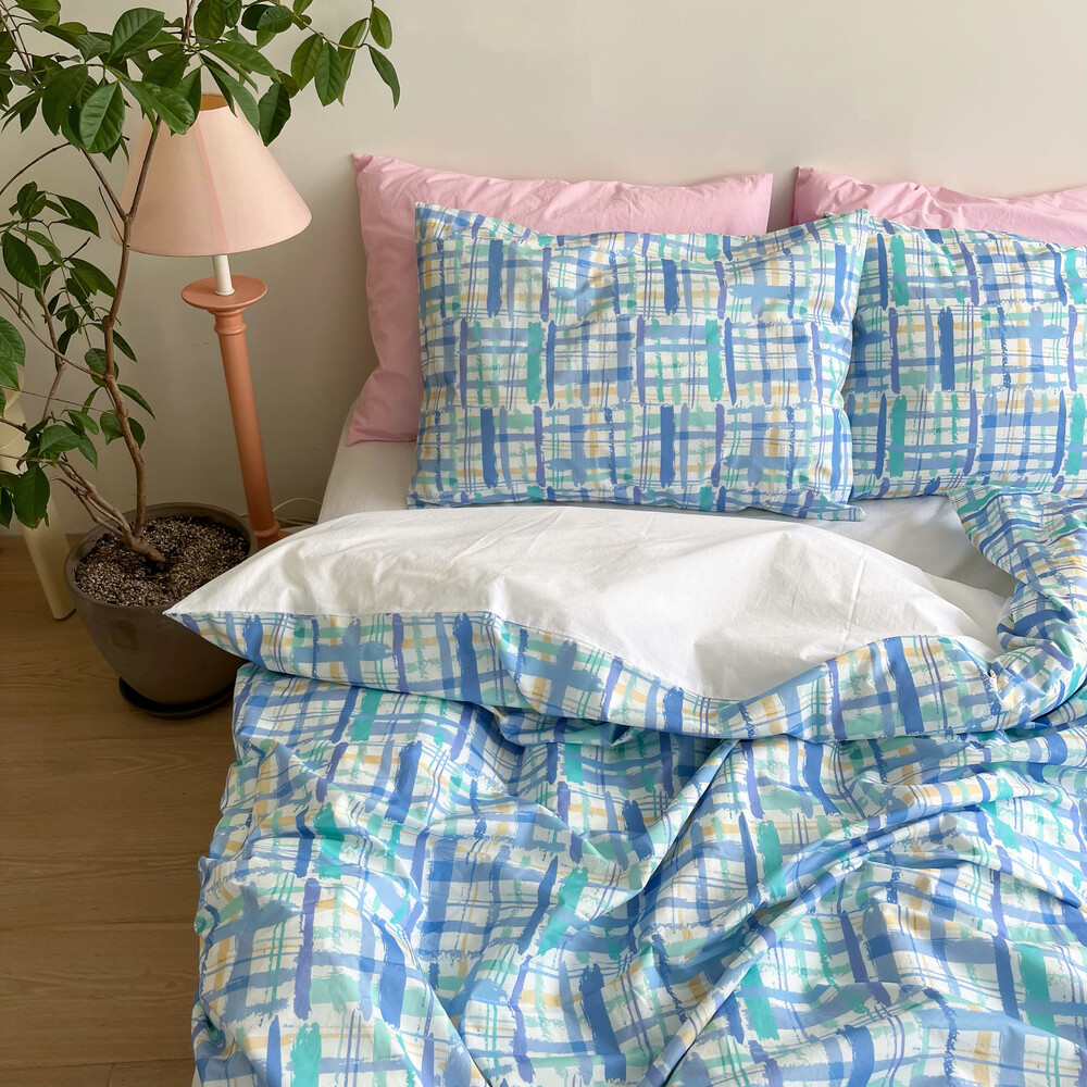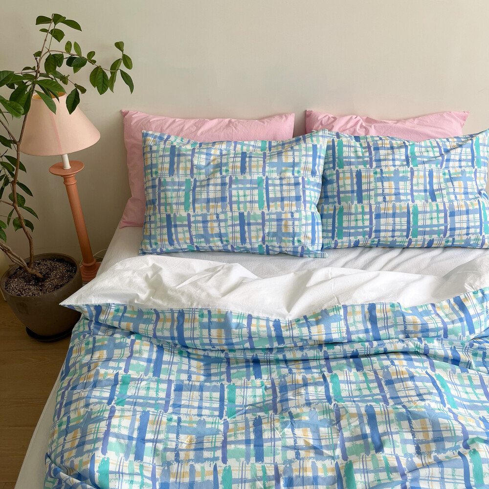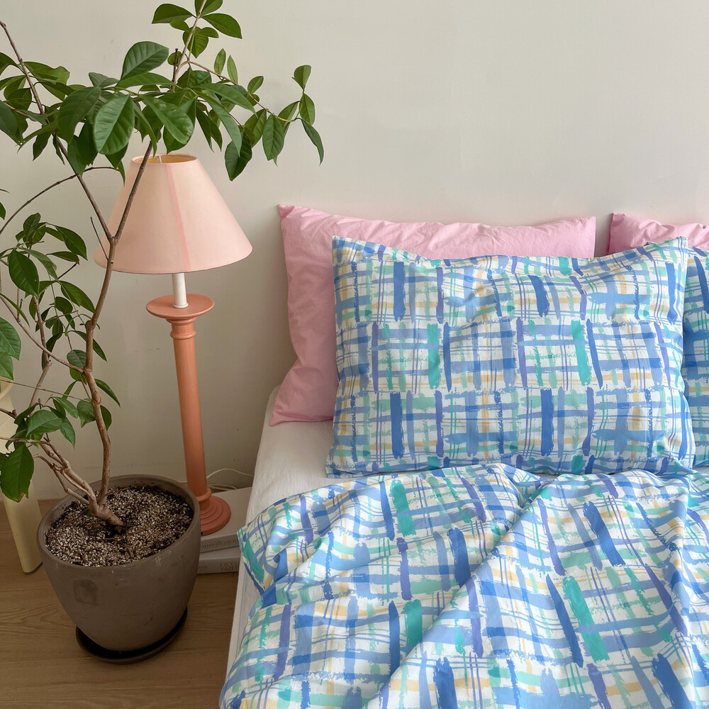 유니크한 디자인의 체크패턴과, 시원한 느낌의 컬러가 잘 어우러진 커버입니다