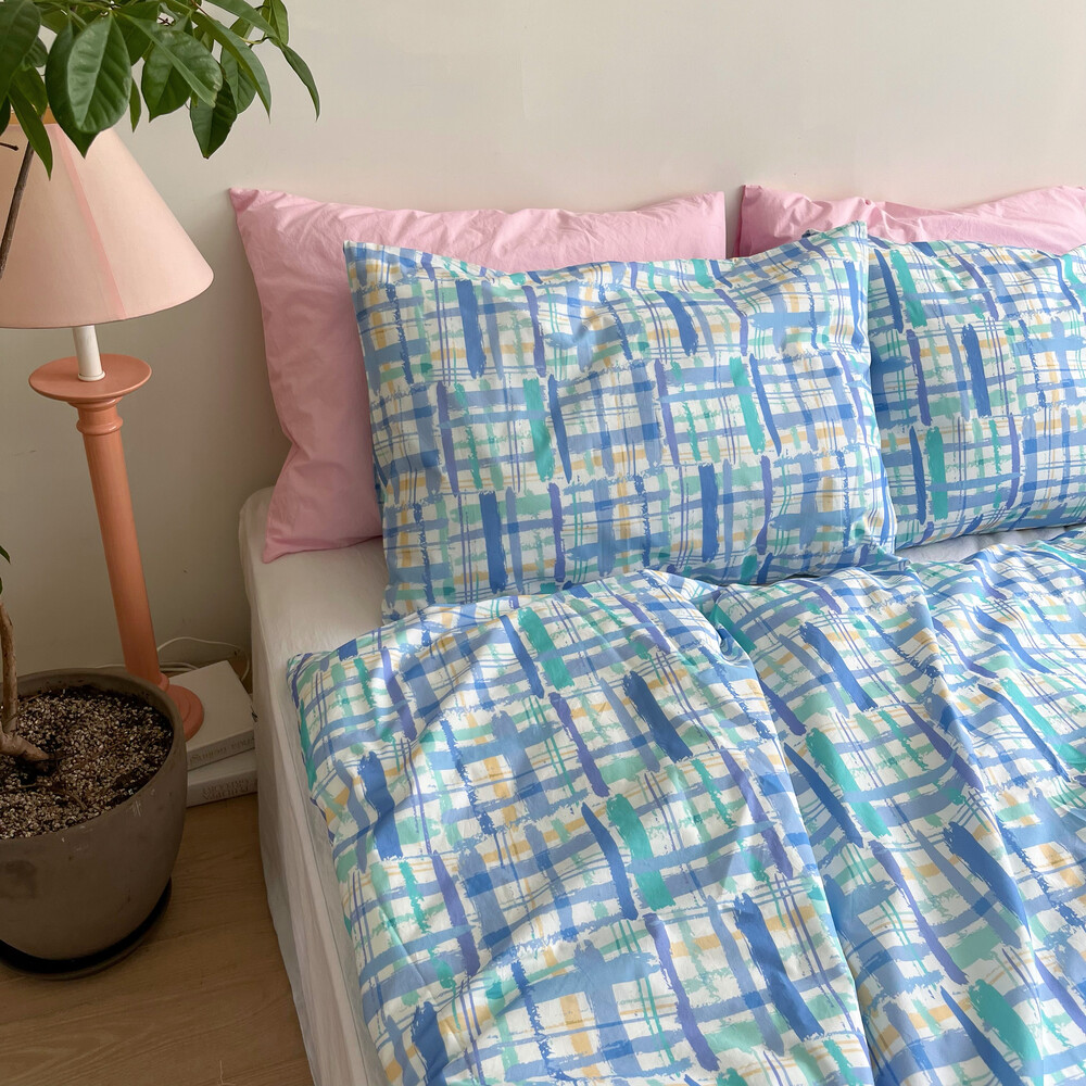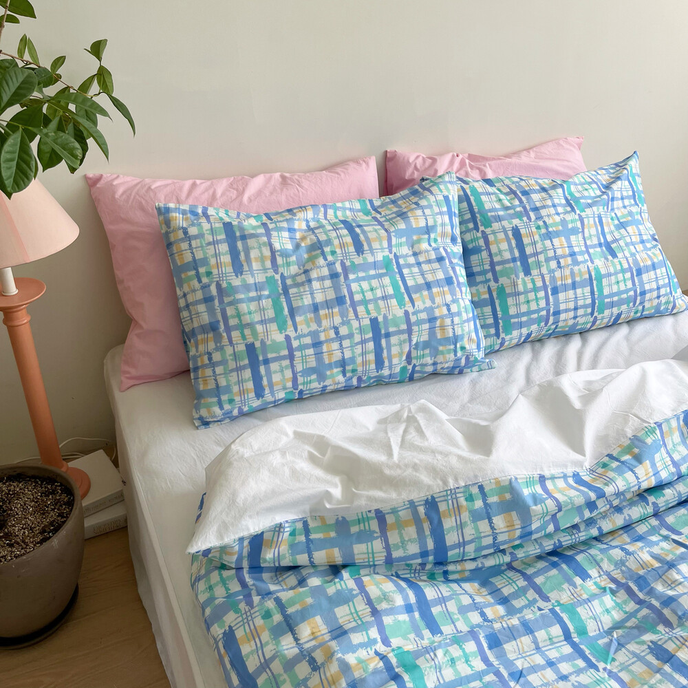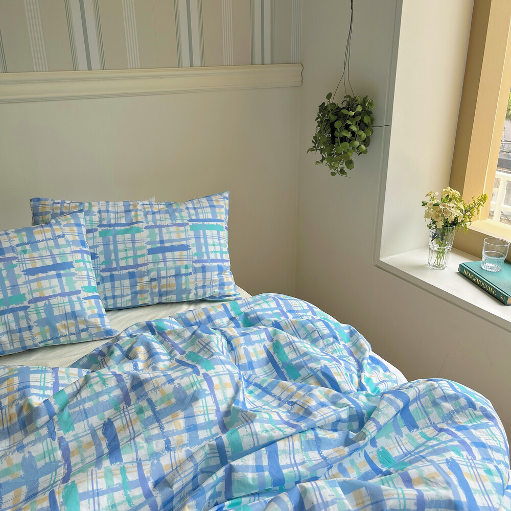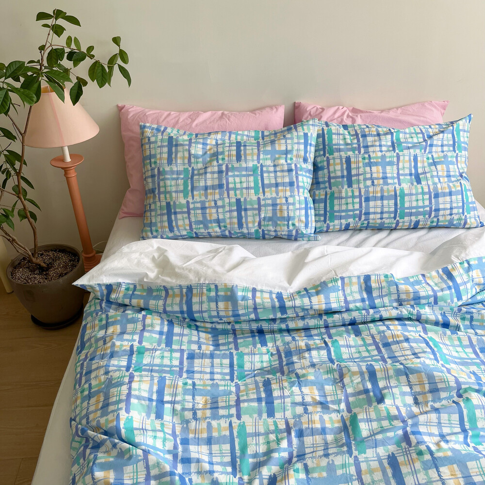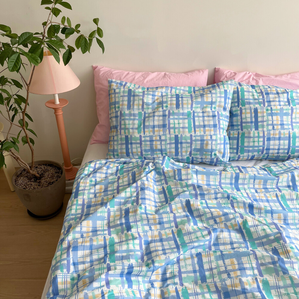유니크한 디자인의 체크패턴과, 시원한 느낌의 컬러가 잘 어우러진 커버입니다