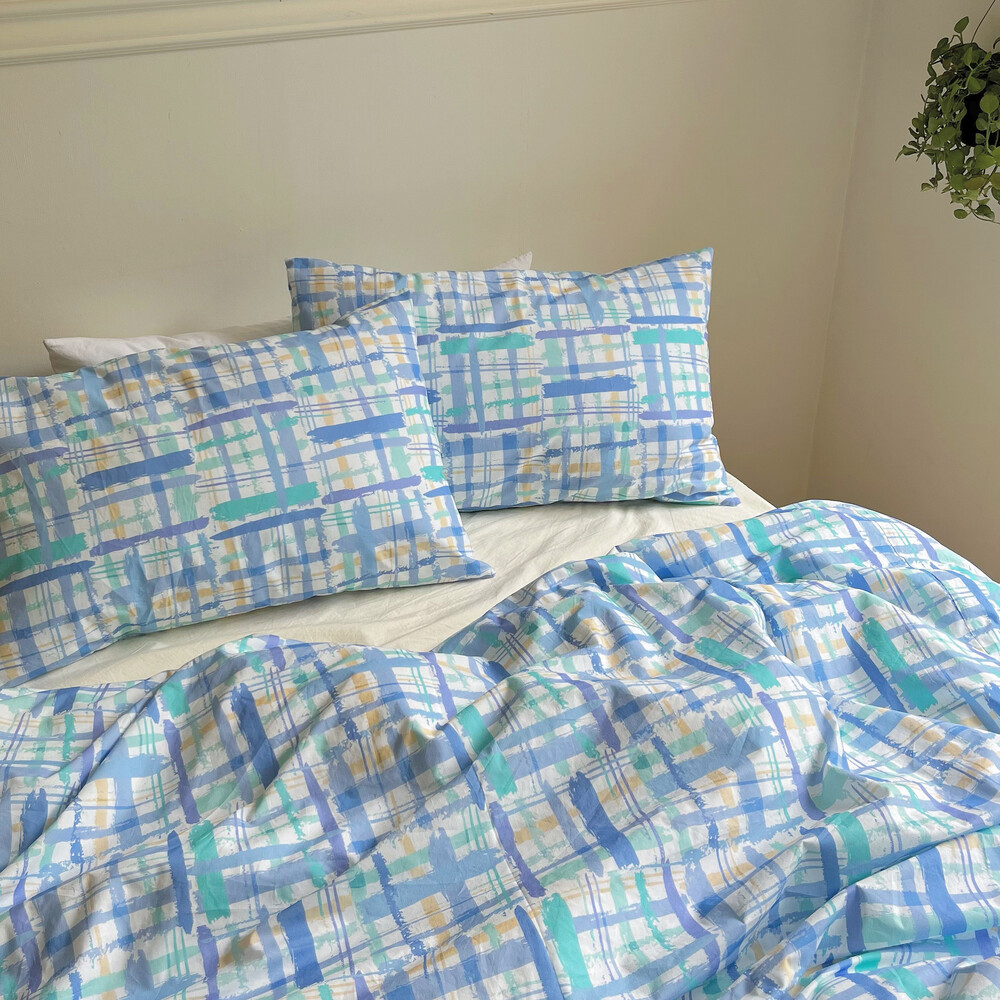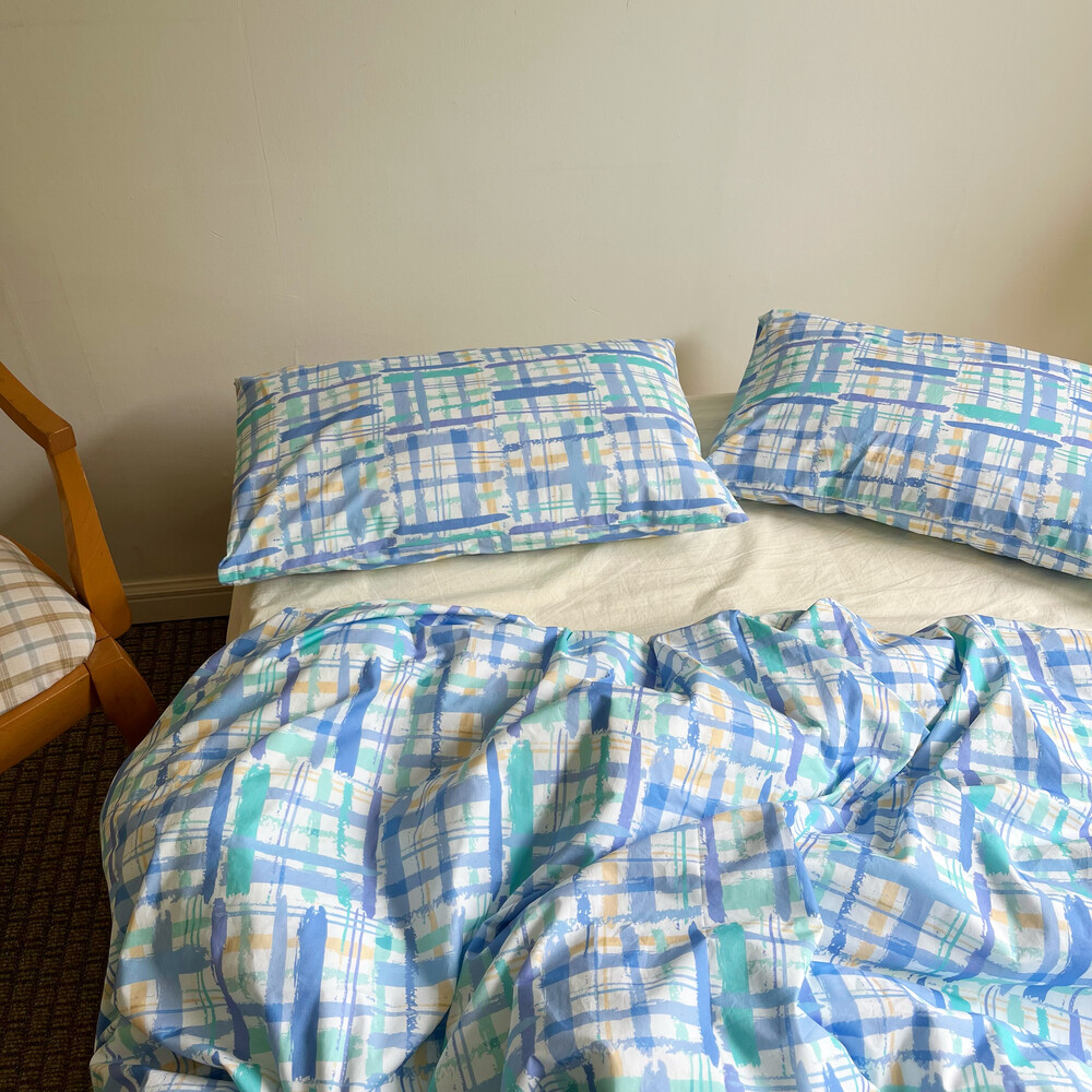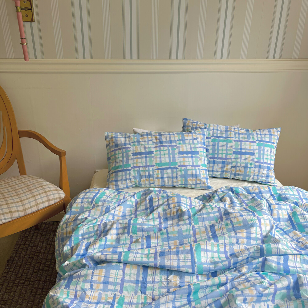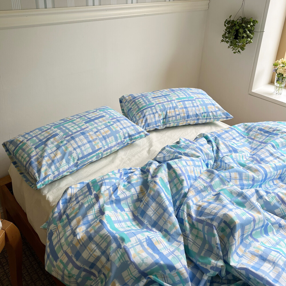 유니크한 디자인의 체크패턴과, 시원한 느낌의 컬러가 잘 어우러진 커버입니다
