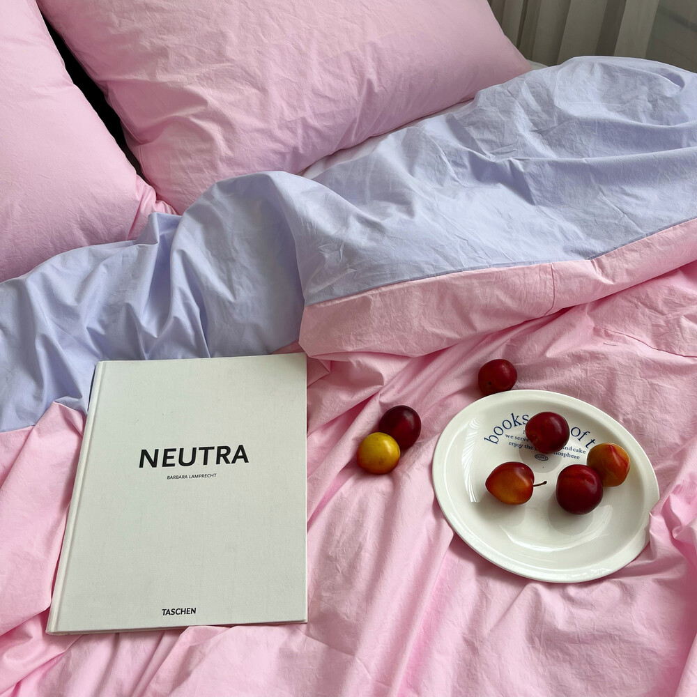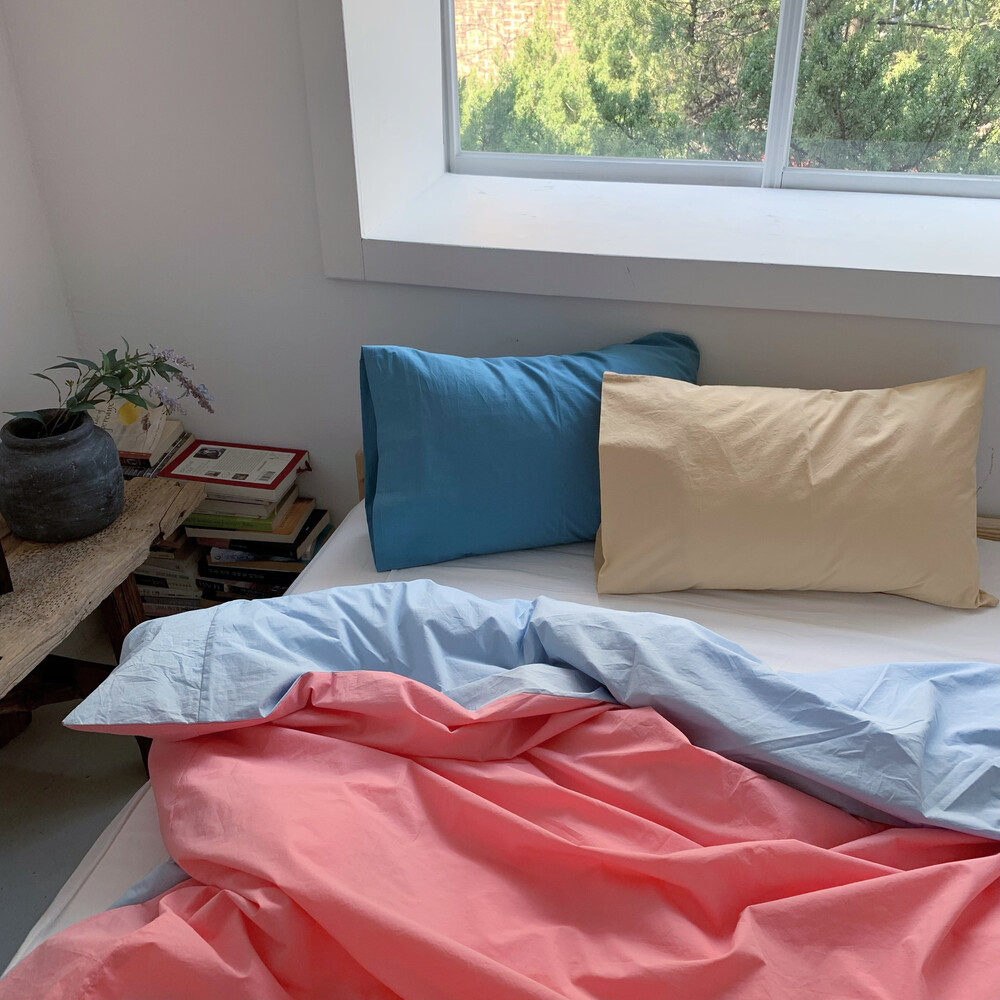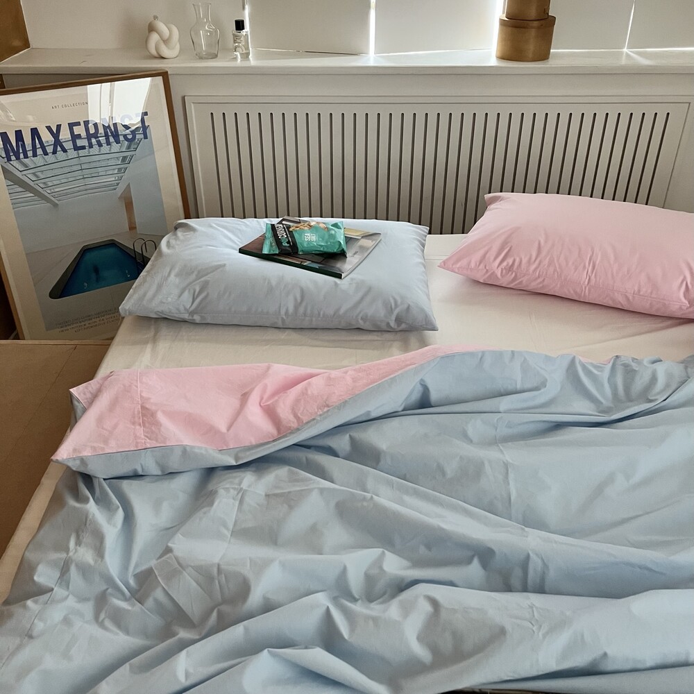 27. 퓨어코튼 체리핑크+스카이 이불커버 싱글사이즈 160*210 (촬영제품)