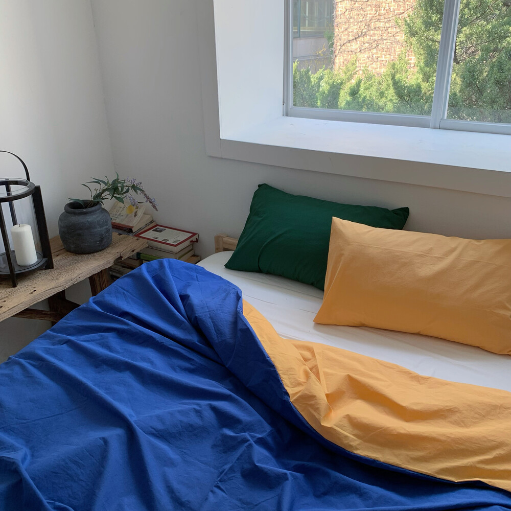 13. 퓨어코튼 코발트블루+선셋옐로우 이불커버 싱글사이즈 160*210 (B급제품/원단오염)