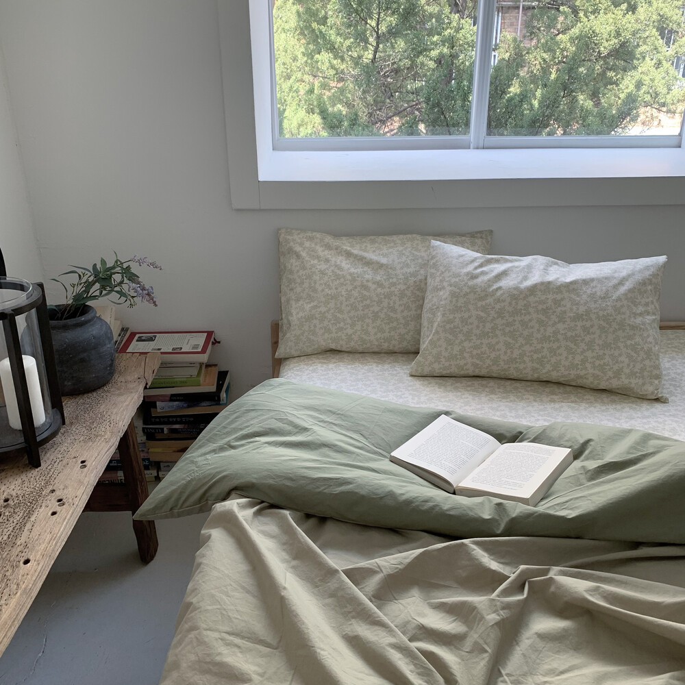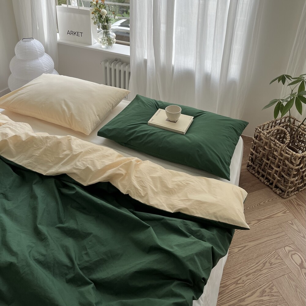 21. 퓨어코튼 그린+바닐라 이불커버 퀸사이즈 200*230 (촬영제품)