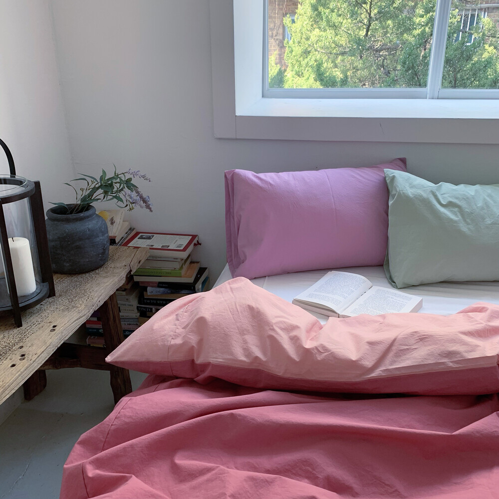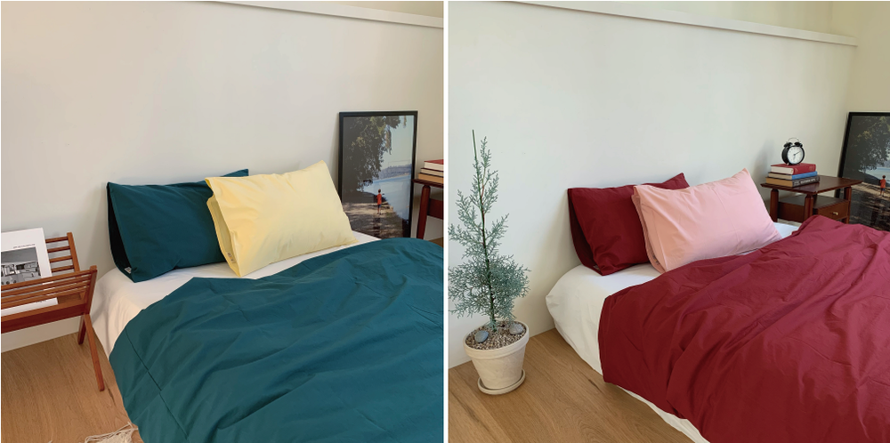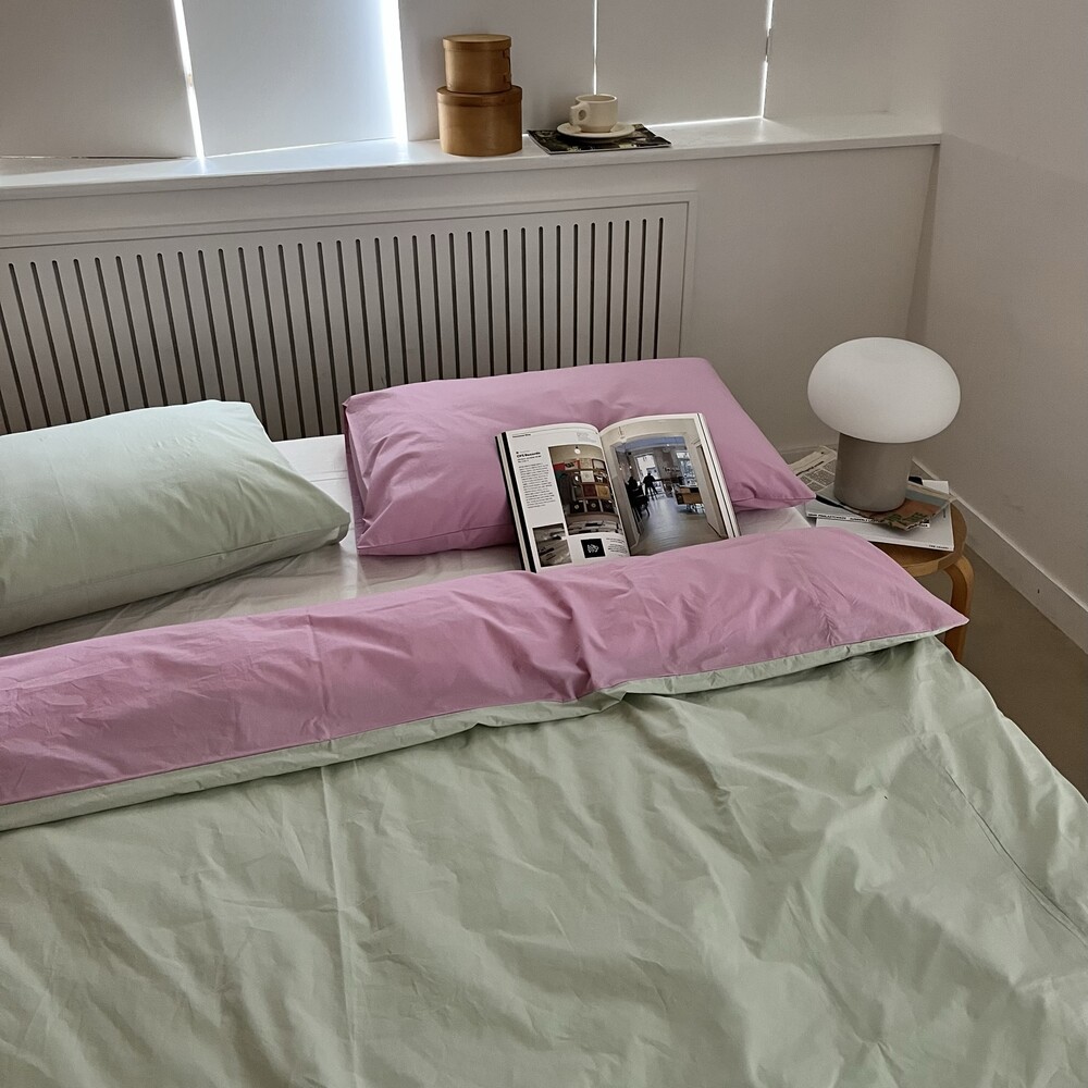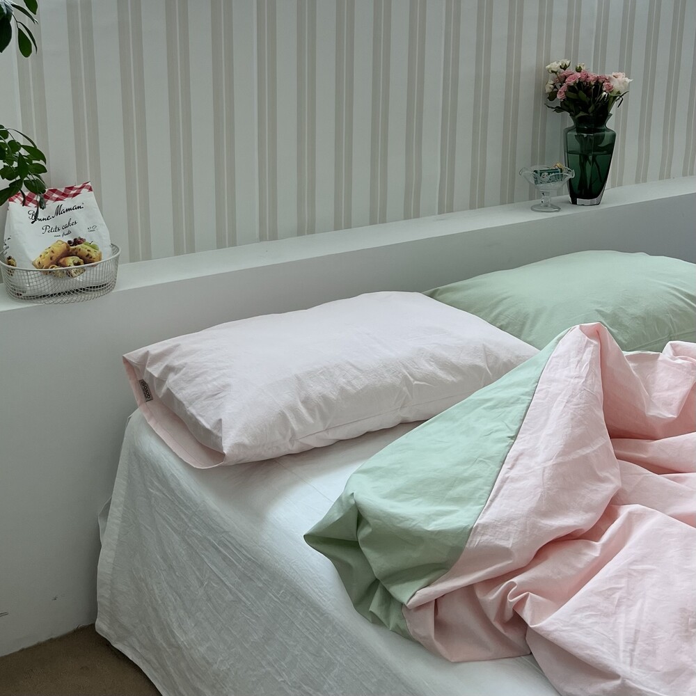 19. 퓨어코튼 베이비핑크+딥민트 이불커버 싱글사이즈 160*210 (촬영제품)