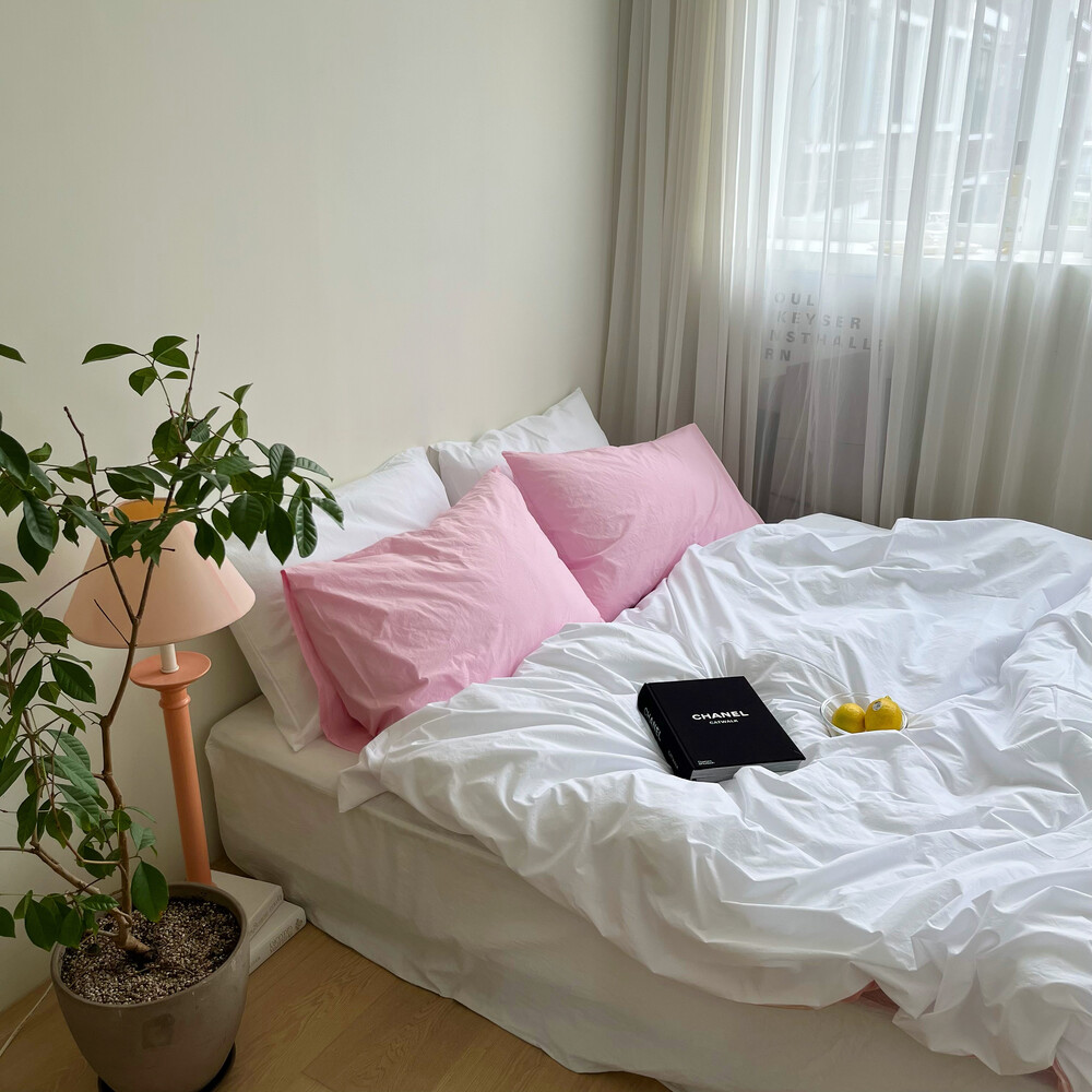 47. 클리프(핑크)+퓨어코튼 화이트 이불커버 퀸사이즈 200*230 (샘플제품)