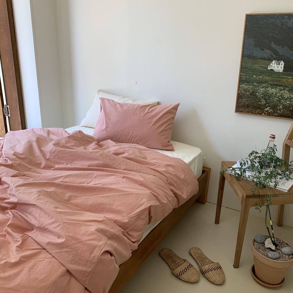 4. 퓨어코튼 살구핑크 이불커버 싱글사이즈 160*210 (B급제품/원단오염)