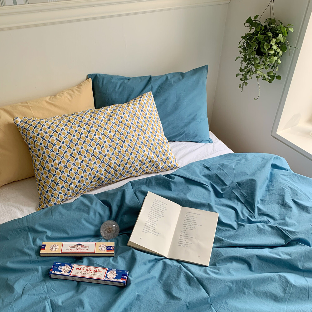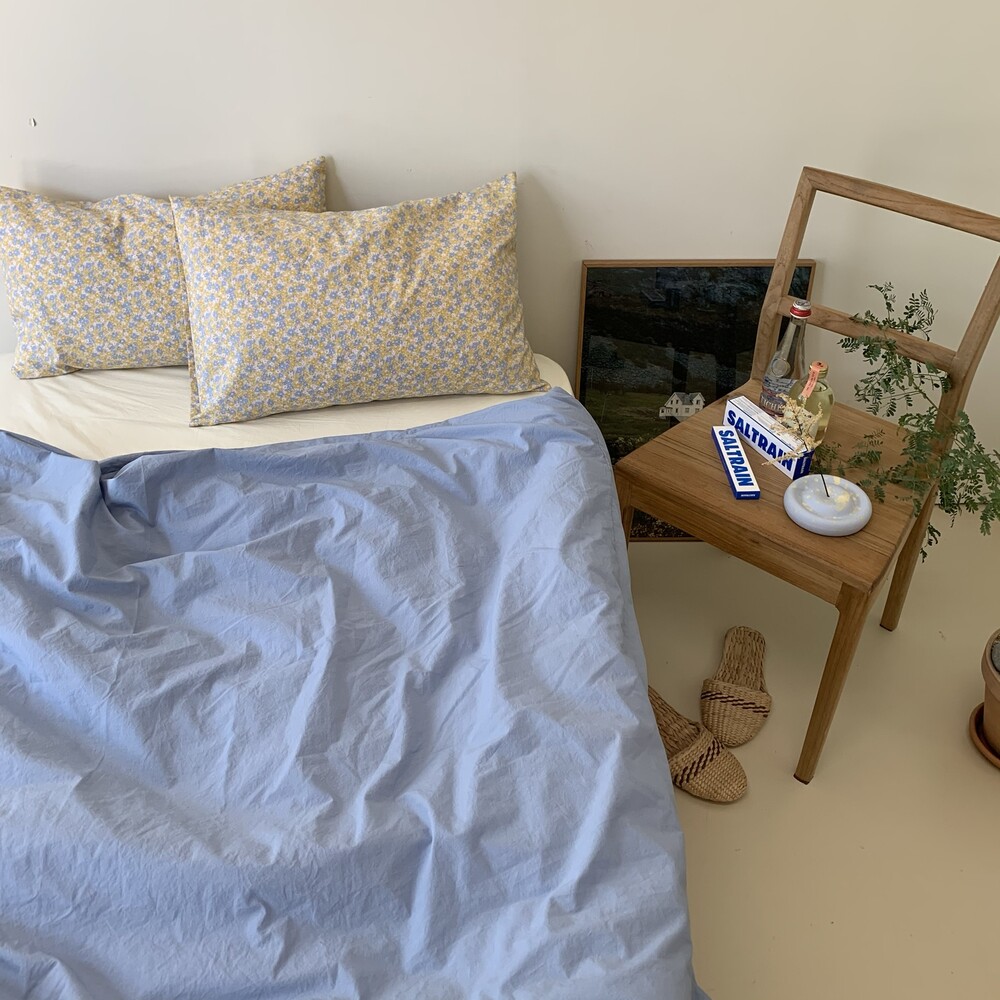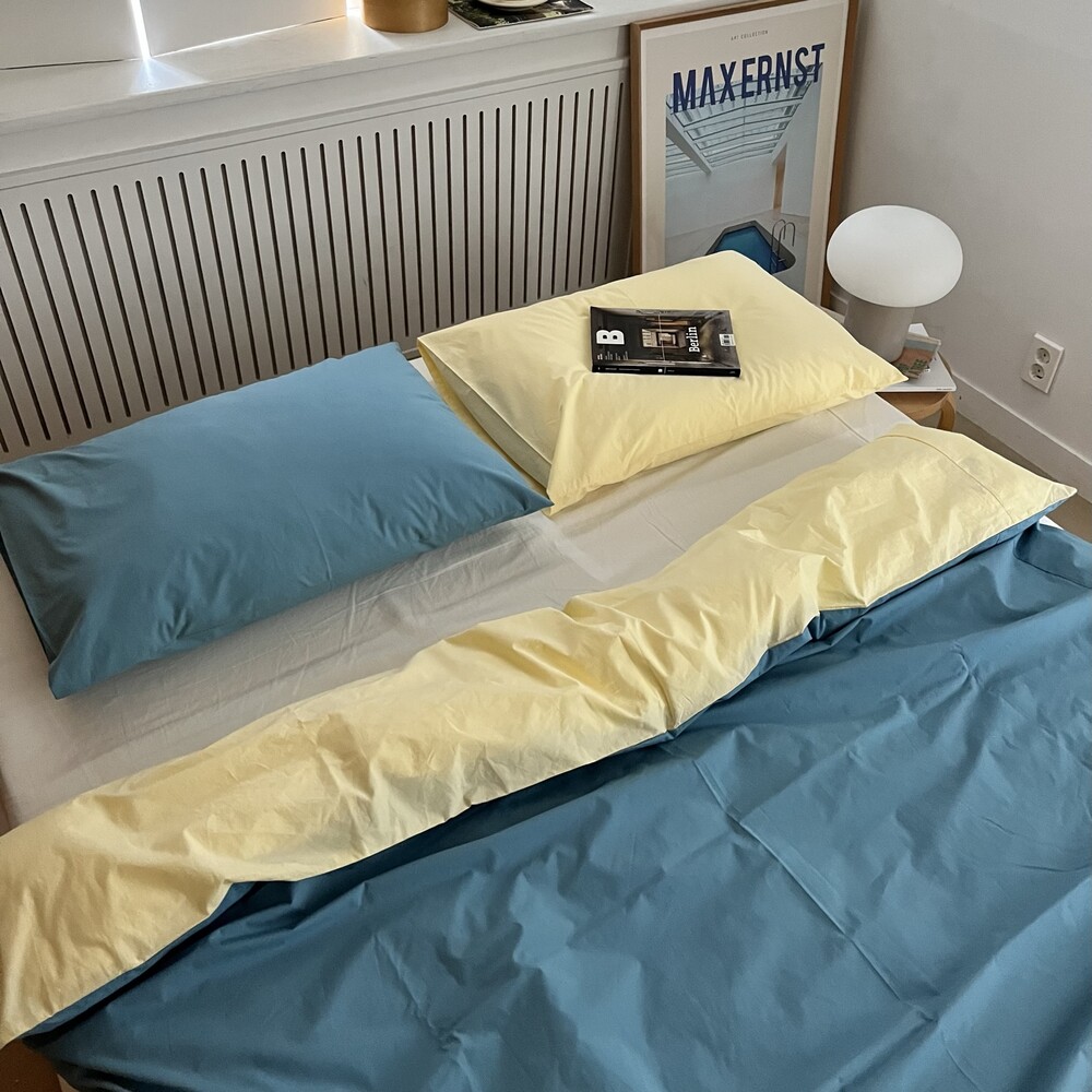 20. 퓨어코튼 프렌치블루+레몬 이불커버 싱글사이즈 160*210 (촬영제품)