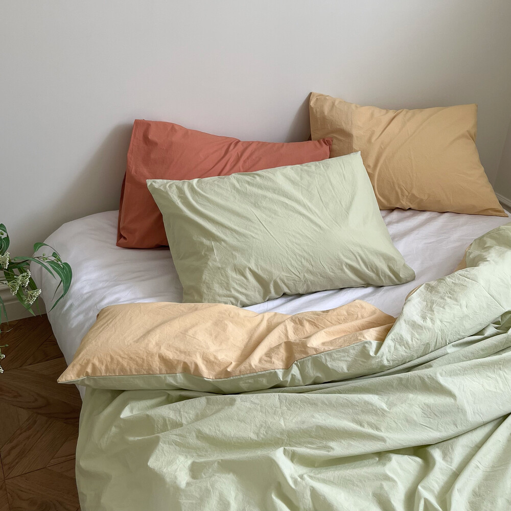 17. 퓨어코튼 애플그린+옐로우베이지 이불커버 퀸사이즈 200*230 (촬영제품)