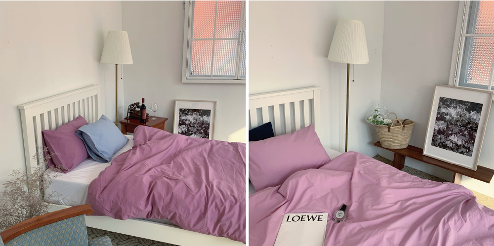 25. 퓨어코튼 스모키퍼플+라일락 이불커버 싱글사이즈 160*210 (샘플제품)