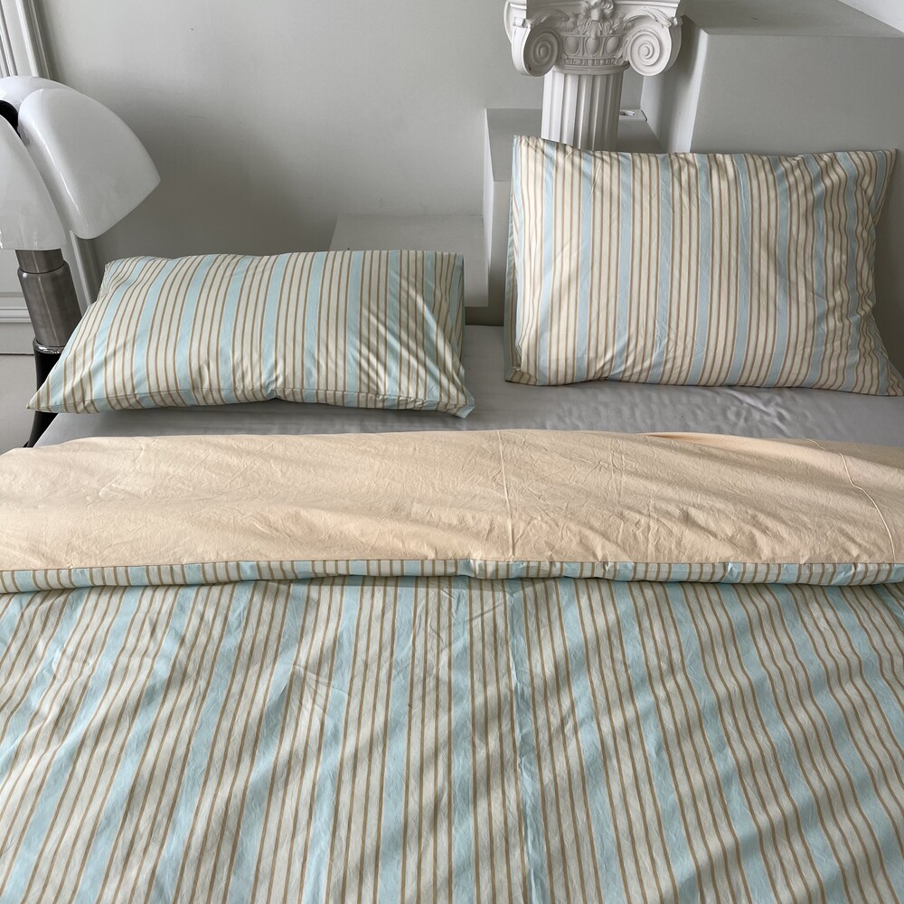 40. 퓨어코튼바닐라+하늘스트라이프 이불커버 퀸사이즈 200*230 (샘플제품)