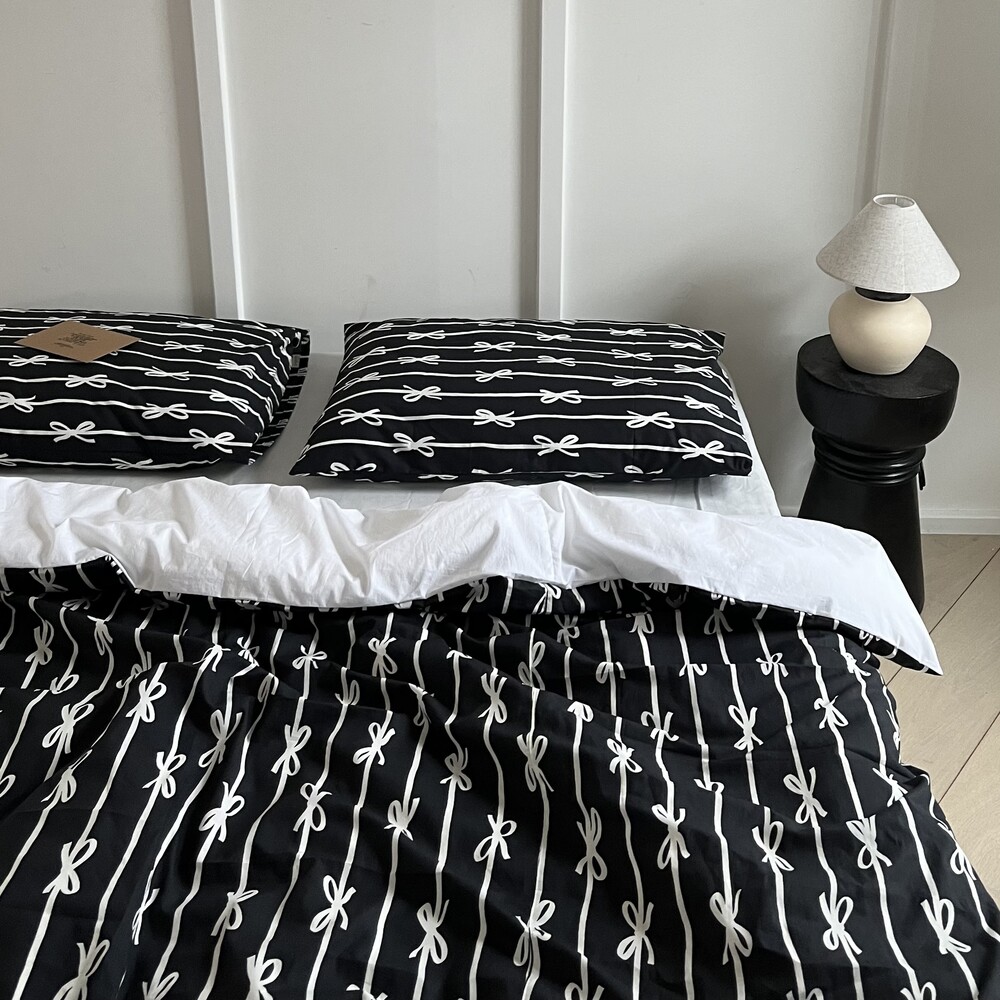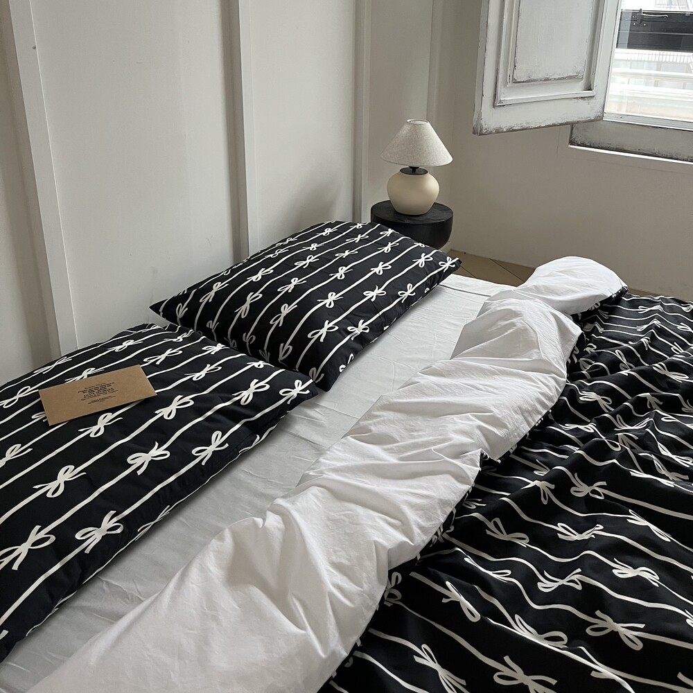 71 블랙리본+퓨어코튼화이트 이불커버 싱글사이즈 160*210 (원단오염)