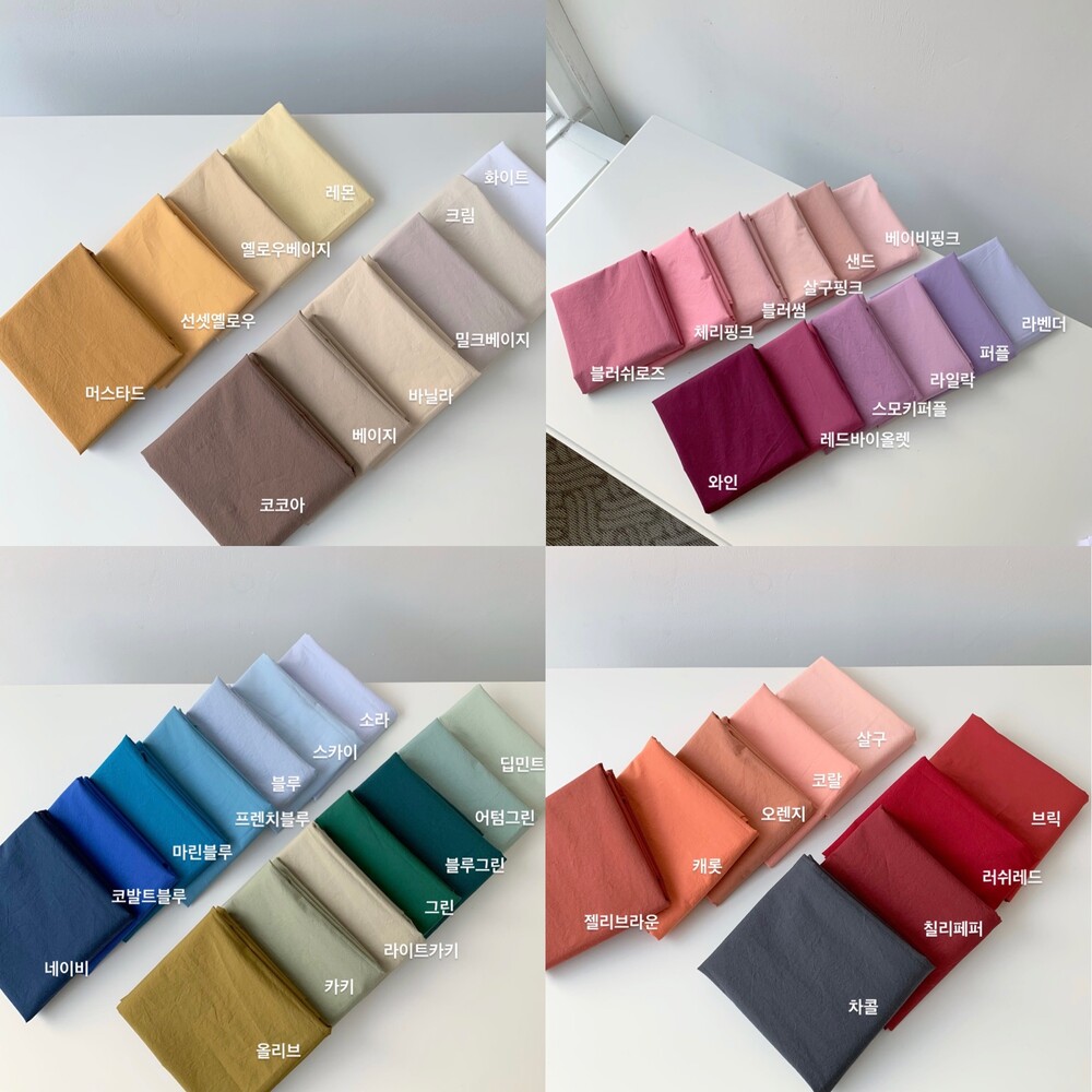 같은 컬러의 원단이라도 생산일에 따라 미세한 색감차이가 있을 수 있습니다.