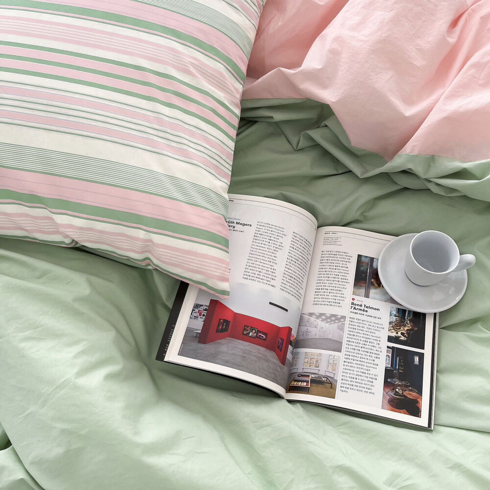 민트스트라이프베개커버 / B급제품(원단불량/색상이 부분적으로 바램)