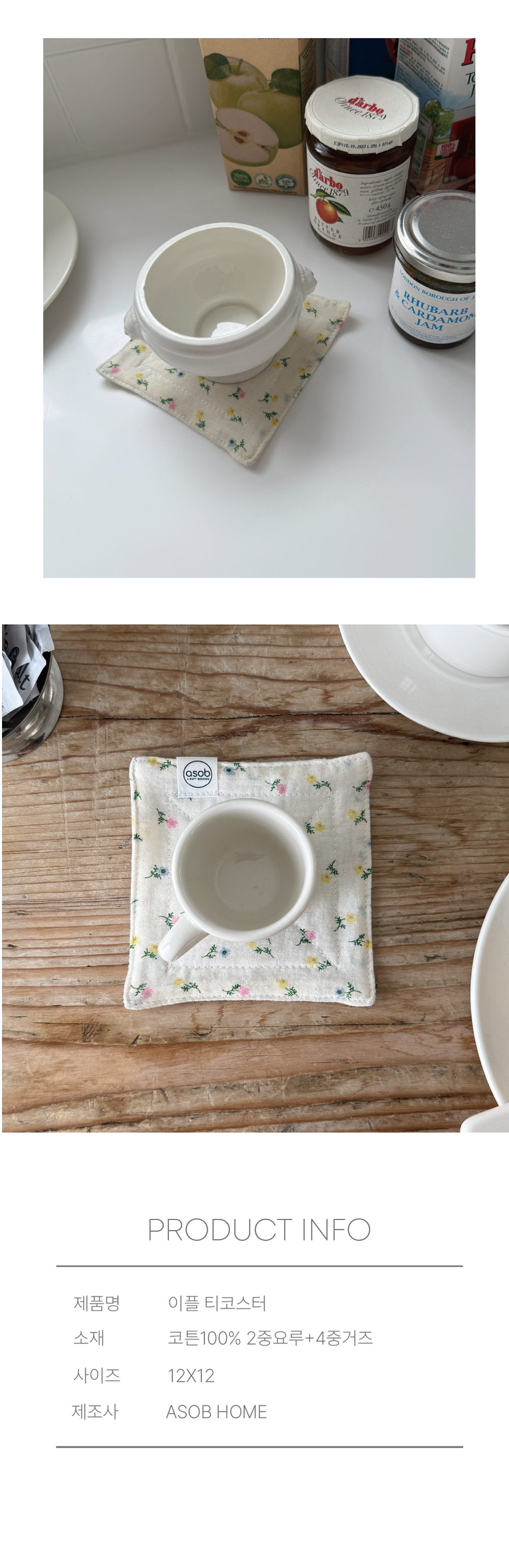 이플 플라워 6중거즈 티코스터 컵받침