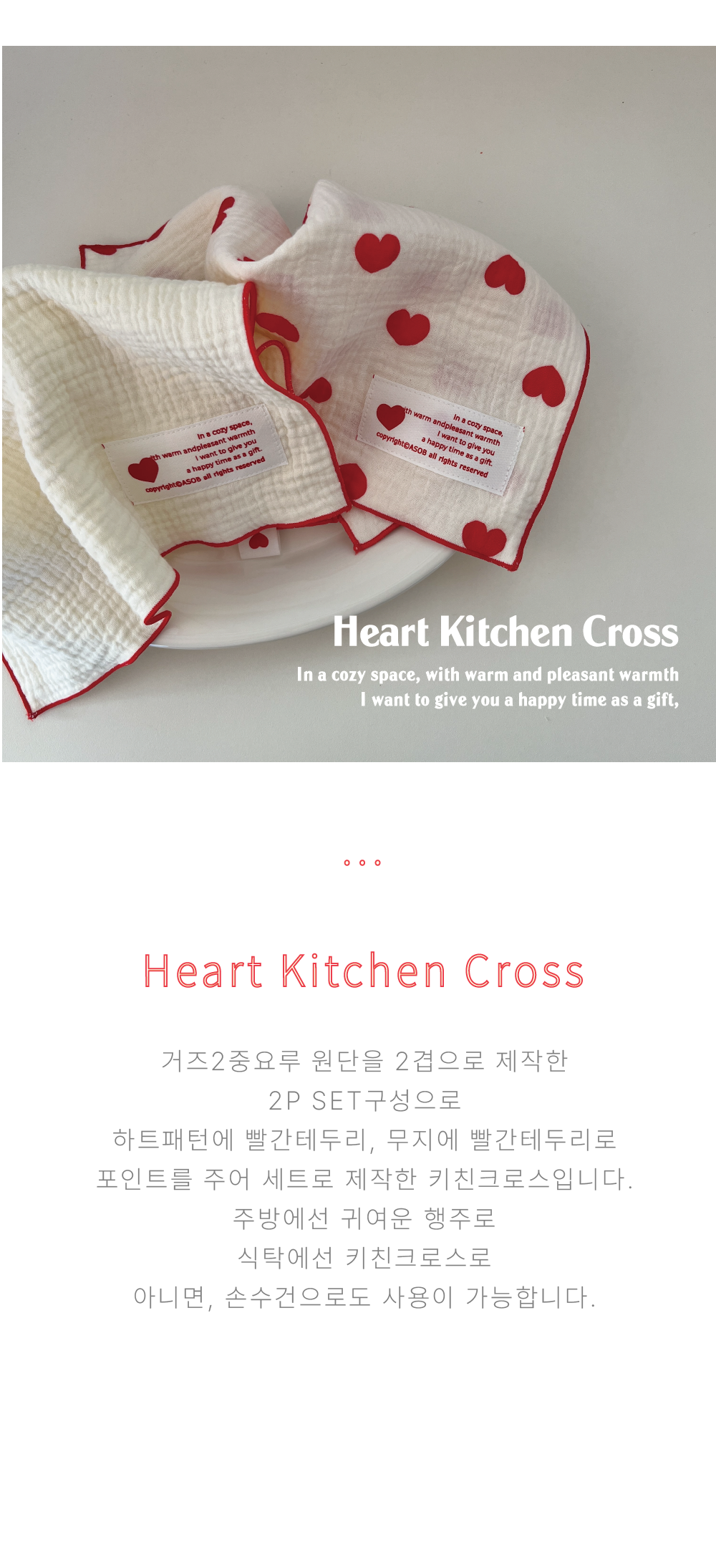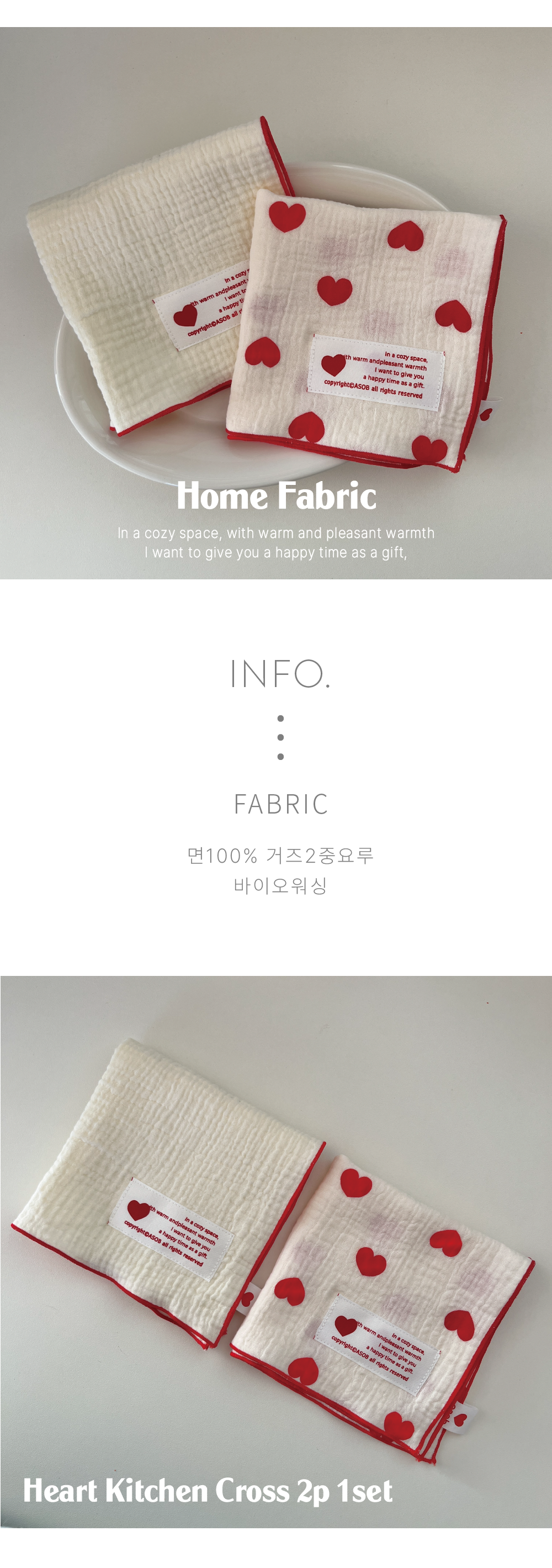 (2p set)하트 거즈4중요루 행주 키친크로스 거즈손수건