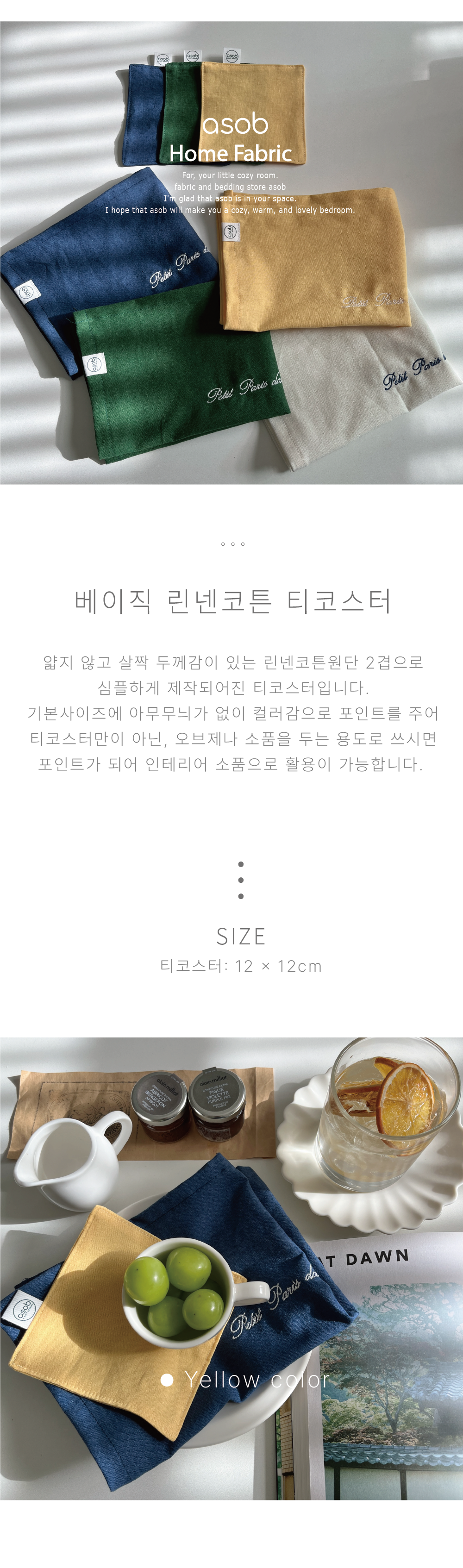 베이직 린넨코튼 티코스터 컵받침(5color)