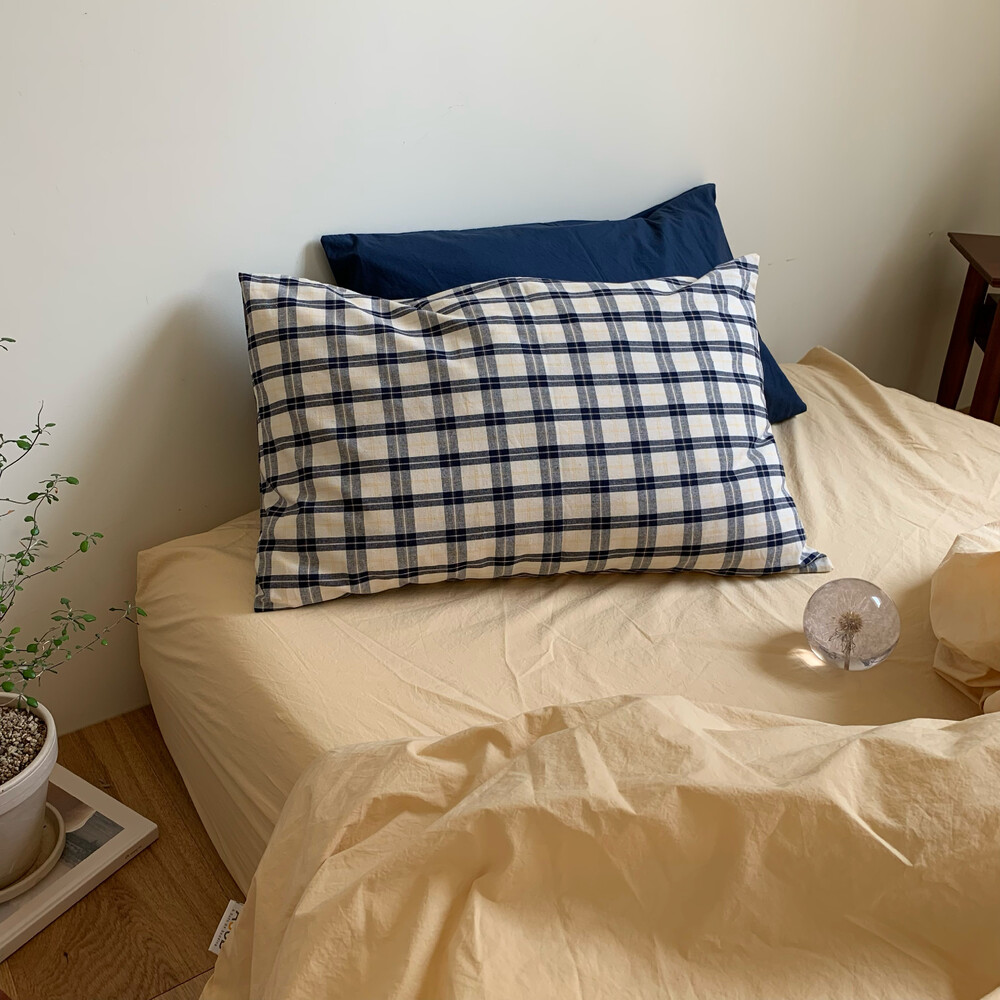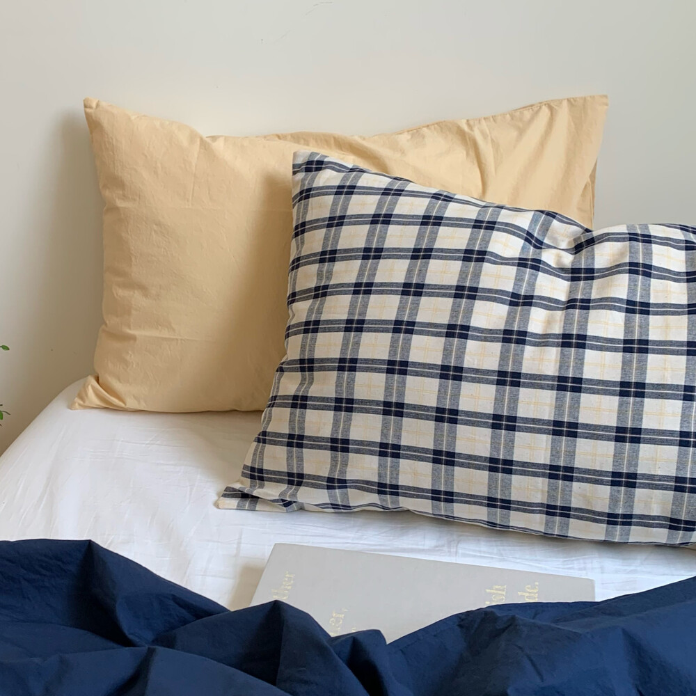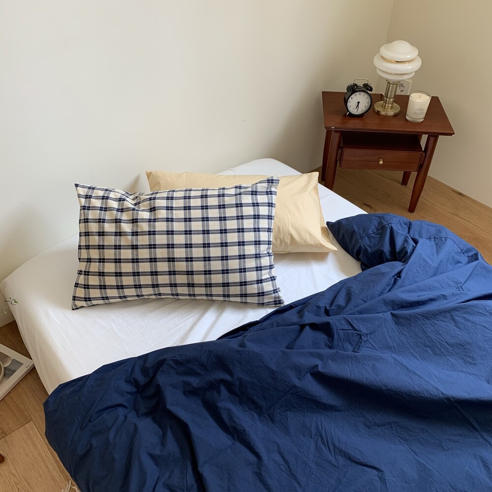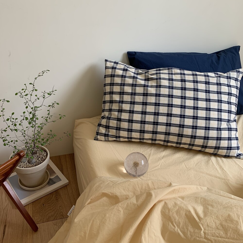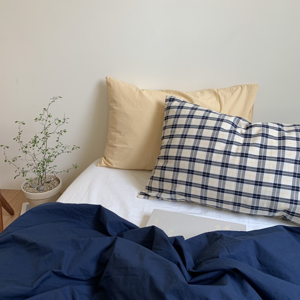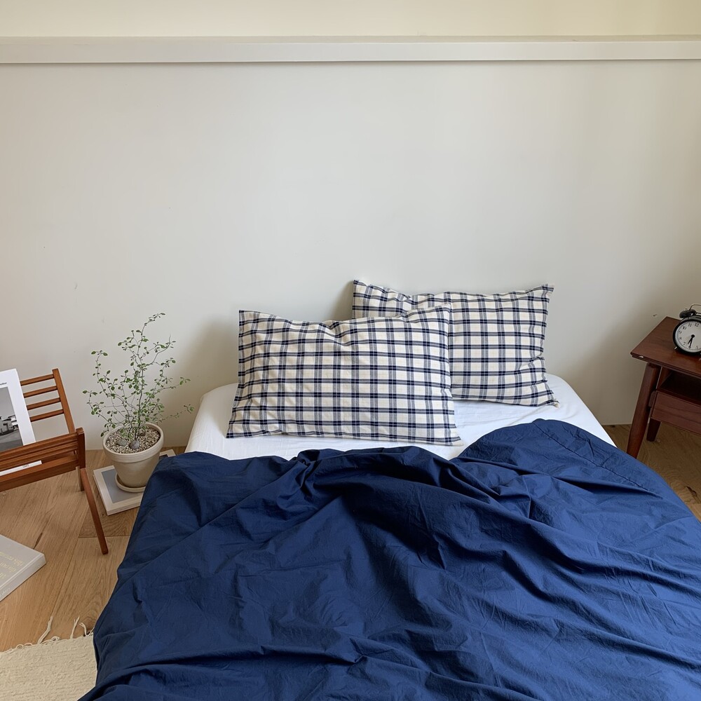 네이비체크는 모던하면서 모든 베딩에 어울리는 패턴으로 많이 찾아다니고, 샘플링도 많이 한 컬러예요