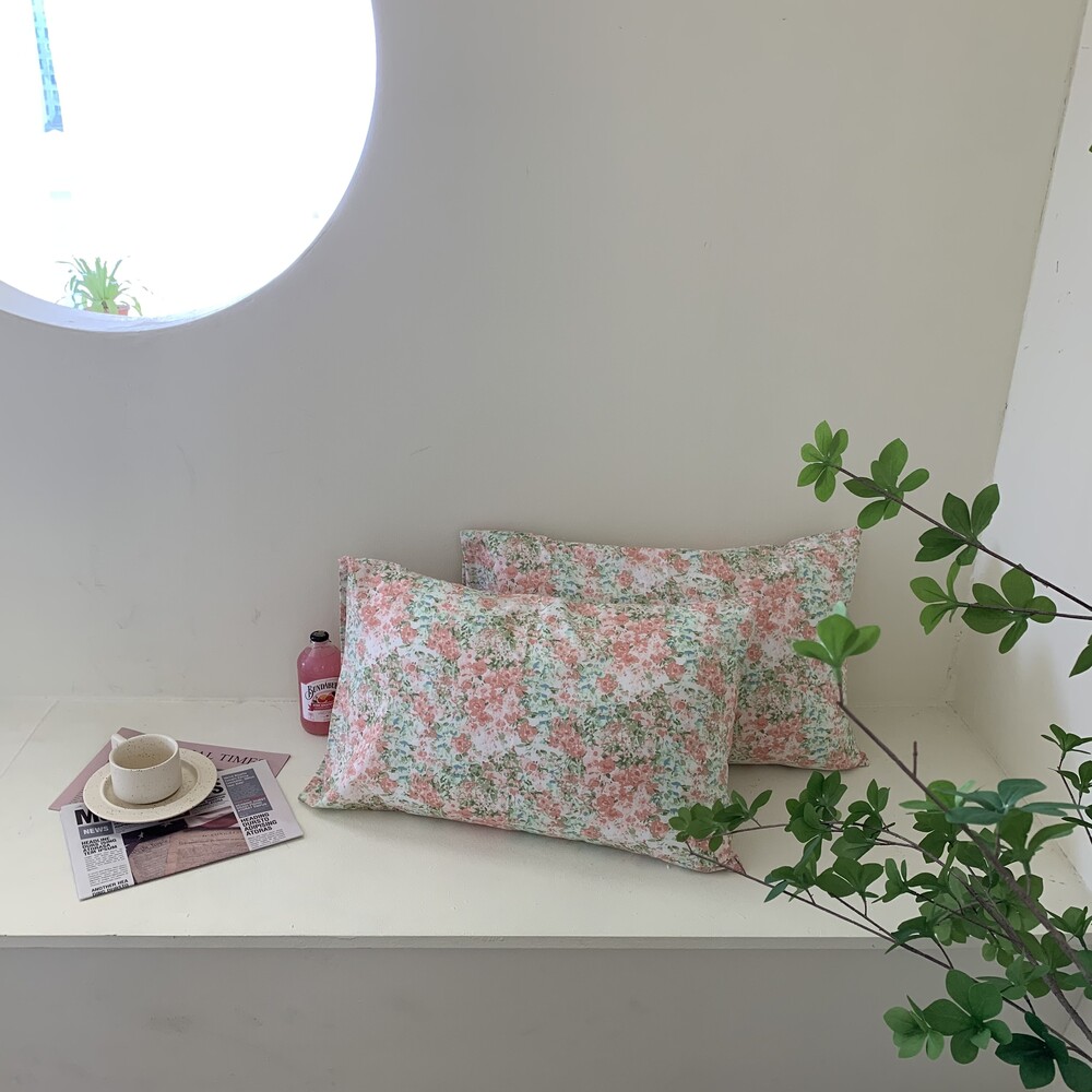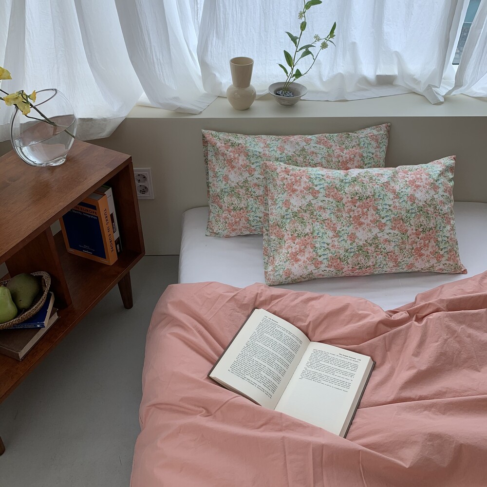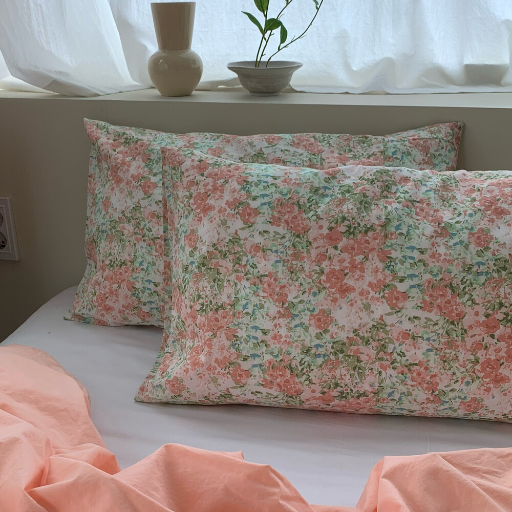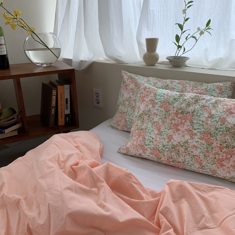 부드러운 살구 색감, 수채화느낌의 패턴들이
