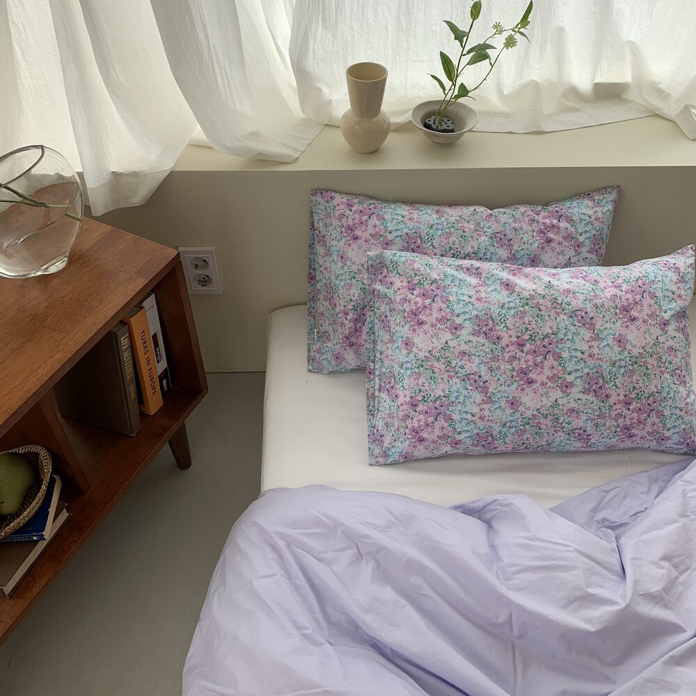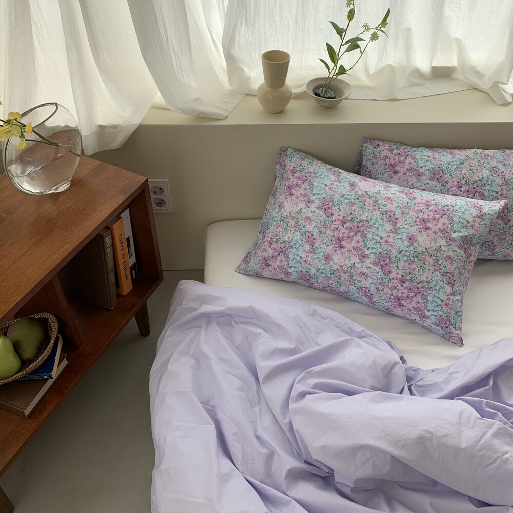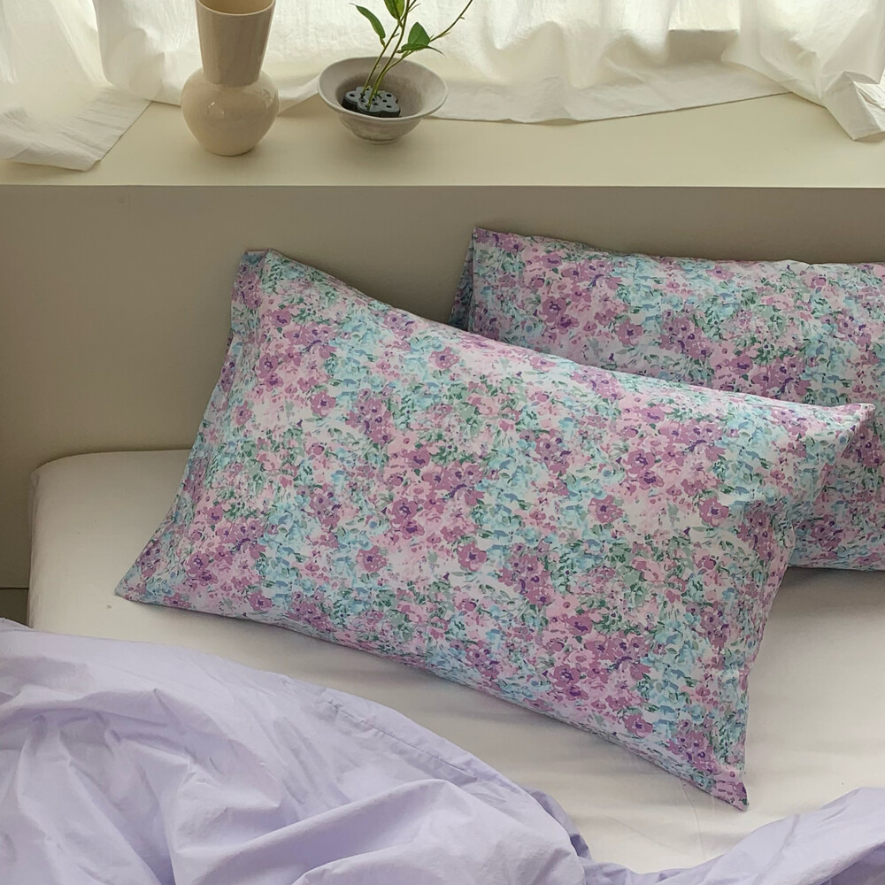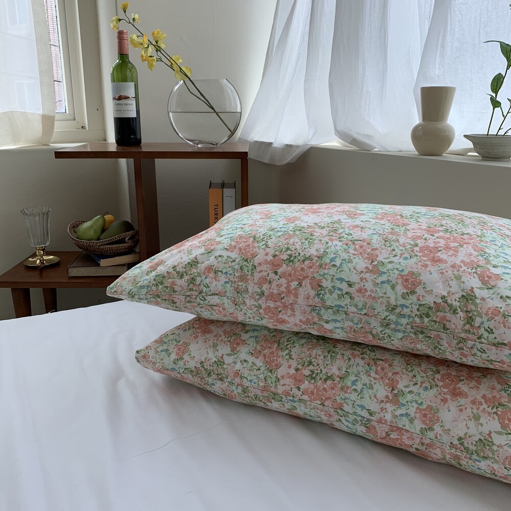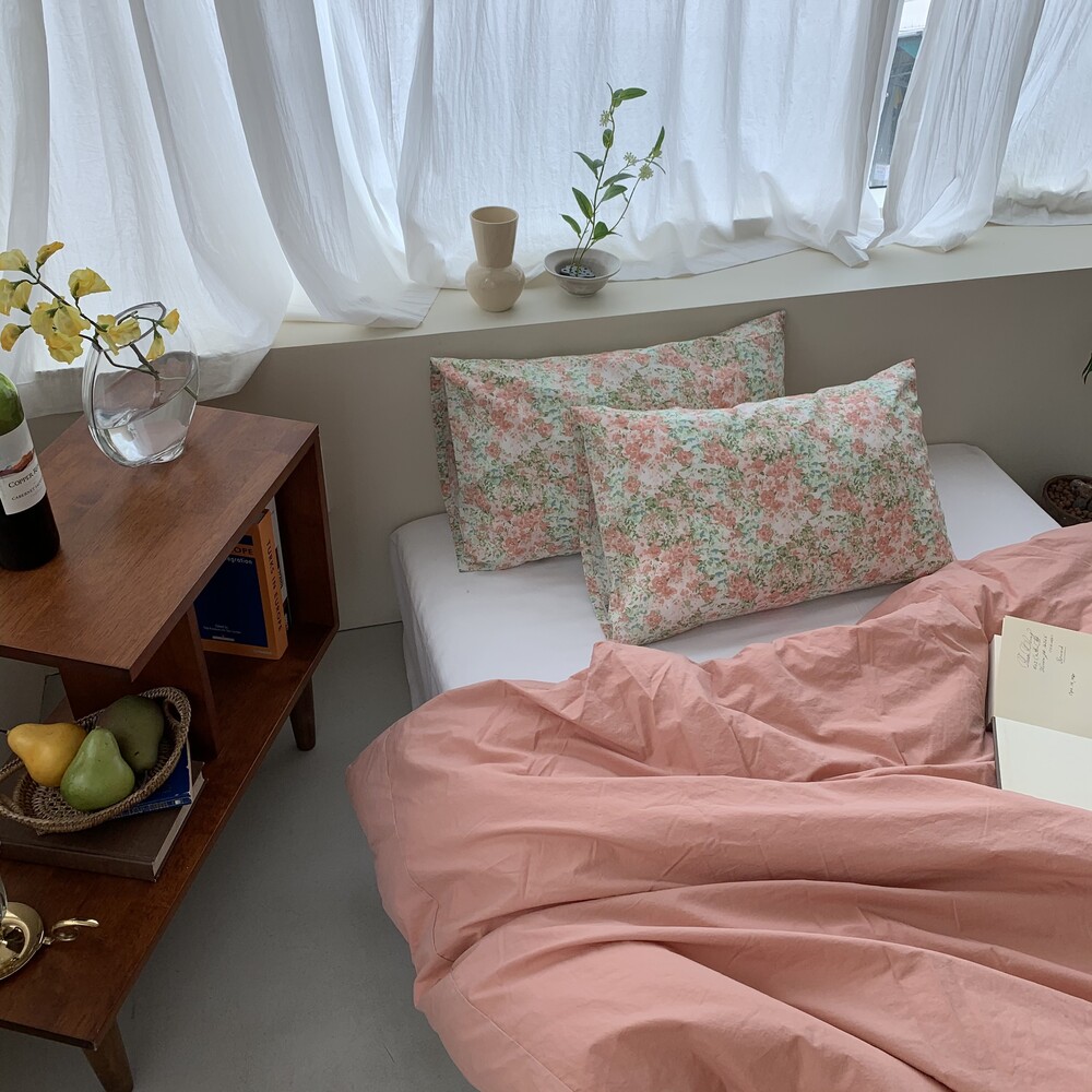 부드러운 살구 색감, 수채화느낌의 패턴들이