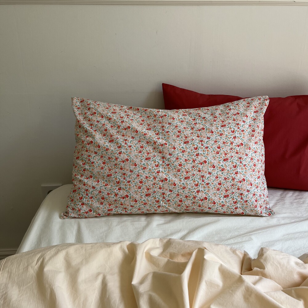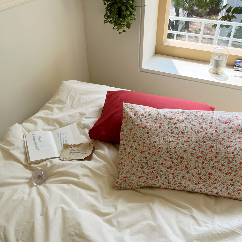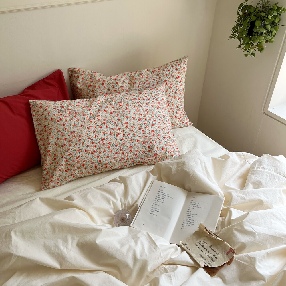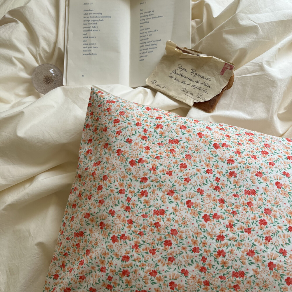 레드,살구,그린컬러들로 이루어진 잔꽃디자인의 커버입니다