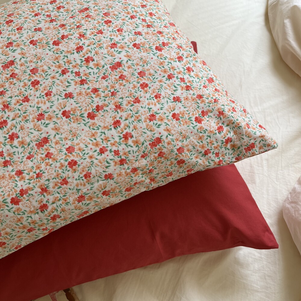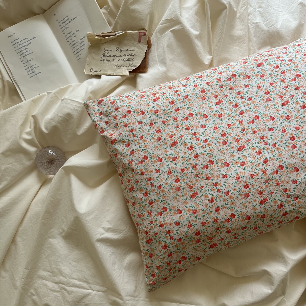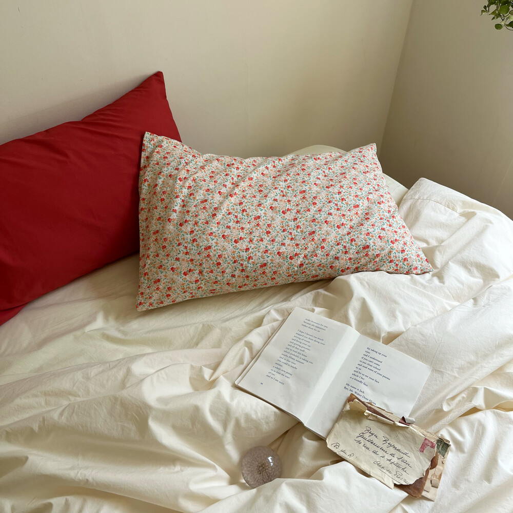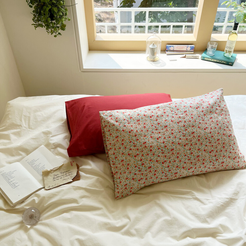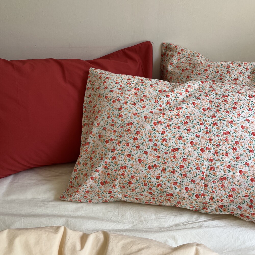 레드,살구,그린컬러들로 이루어진 잔꽃디자인의 커버입니다