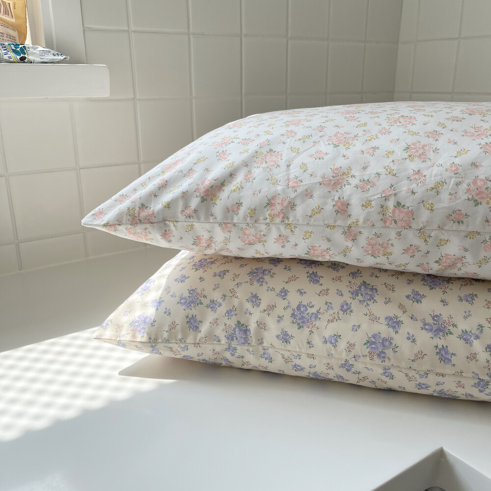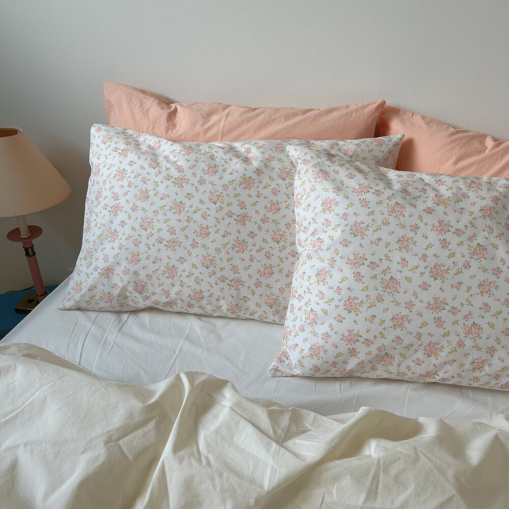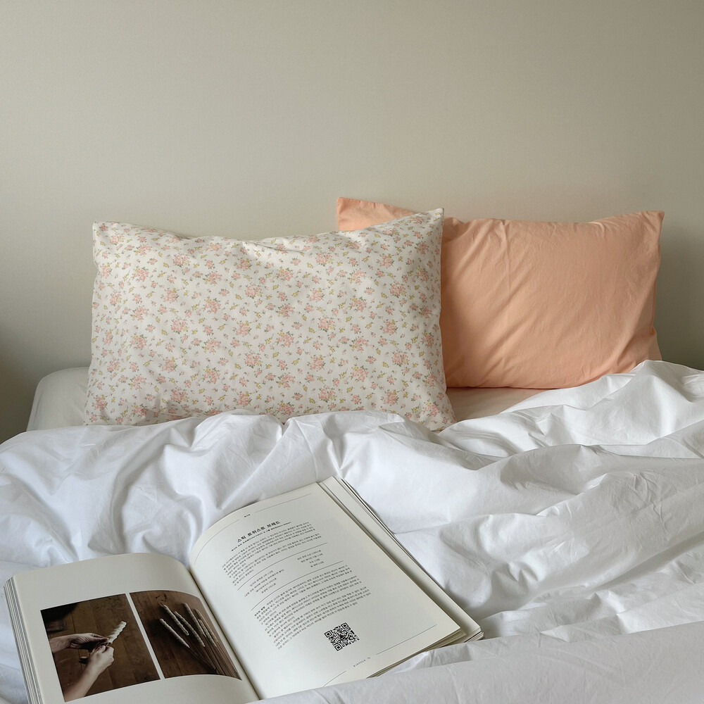 사랑스러운 컬러감의 살구/보라컬러의 베개커버입니다