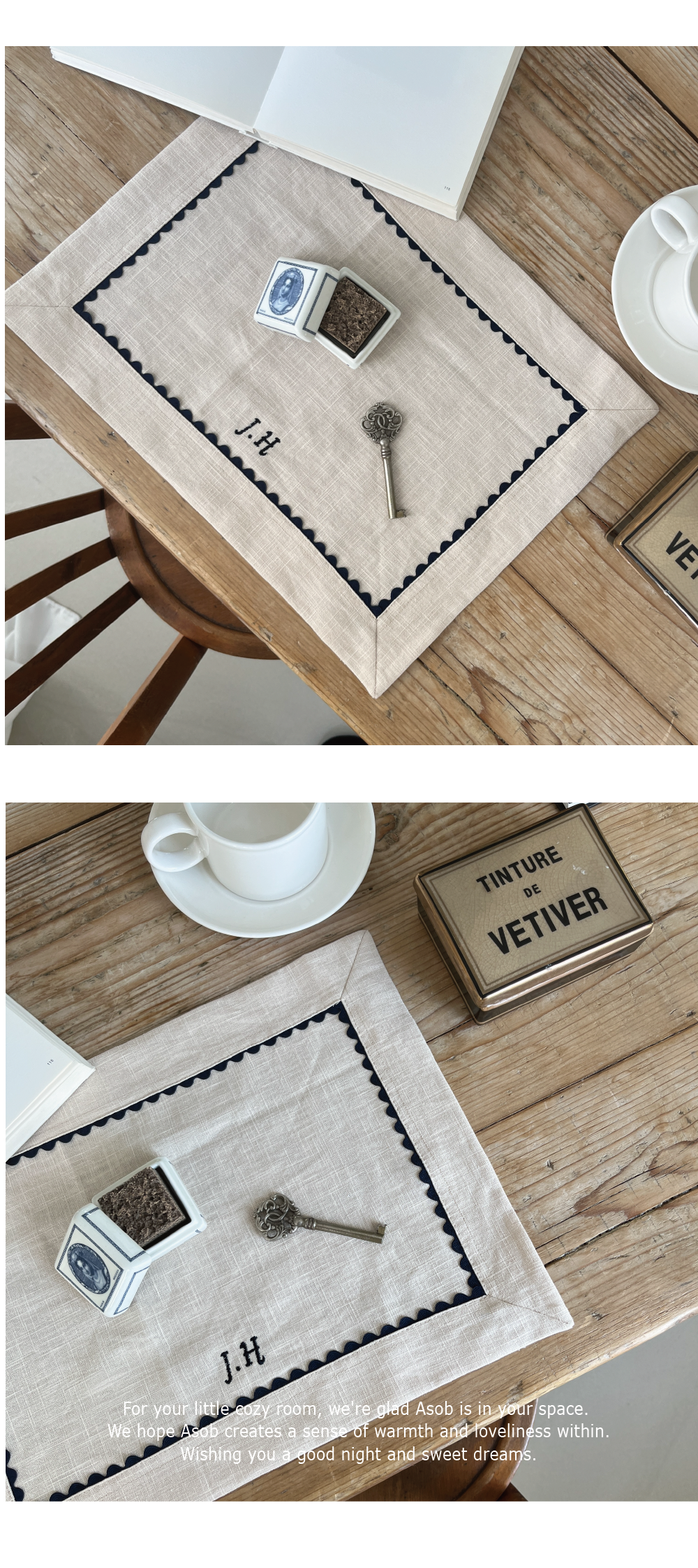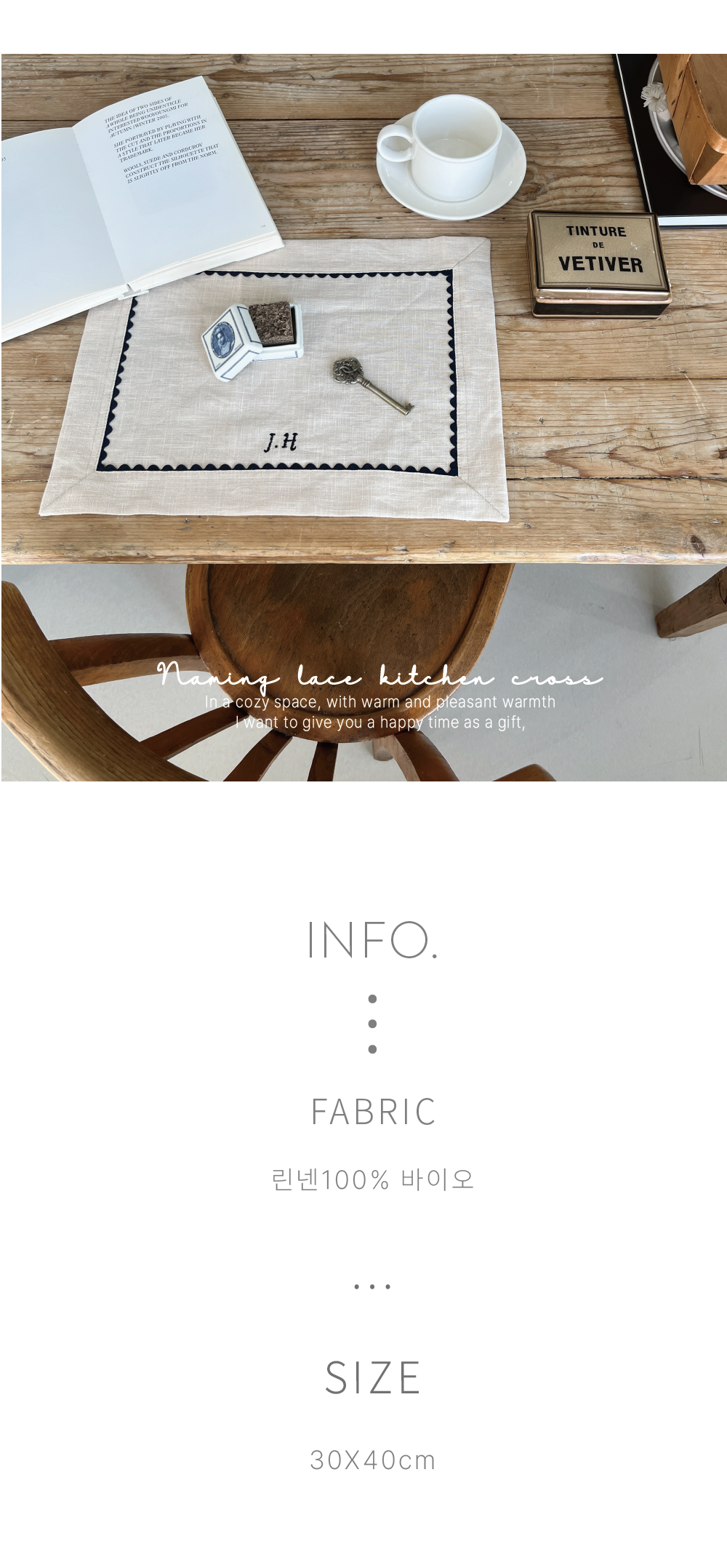 네이밍 이니셜 레이스 베이지린넨 키친크로스 테이블매트