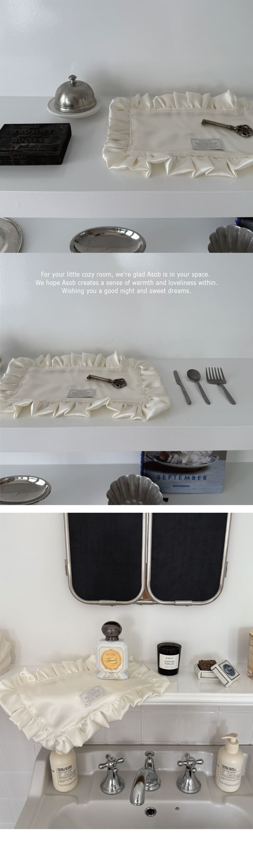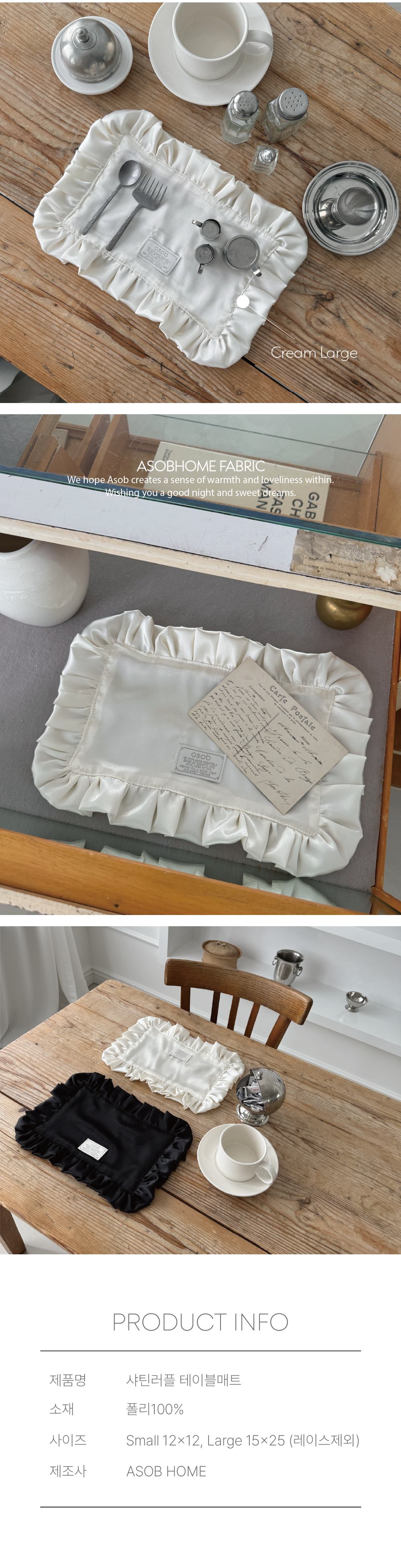 크림샤틴 러플 테이블매트 키친크로스